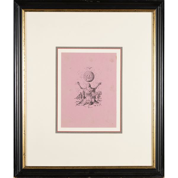 21x15,5 cm."Orante", 1949, china su carta, siglato in alto al centro, entro cornice