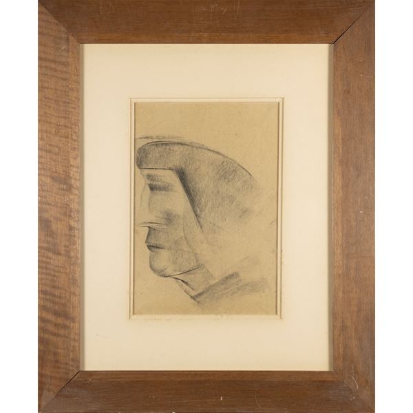 28,5x19,5 cm."Profilo maschile", anni '10, carboncino su carta, iscrizione sul retro per autentica: "Eseguito da mio padre Lorenzo Viani. Ornella Viani Vangelli"