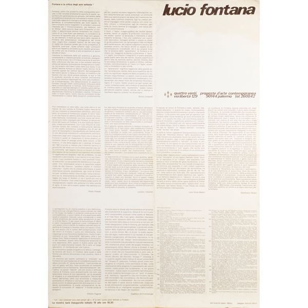 69x48 cm.Manifesto "Lucio Fontana", 1971, stampa a colori su carta, foglio libero.