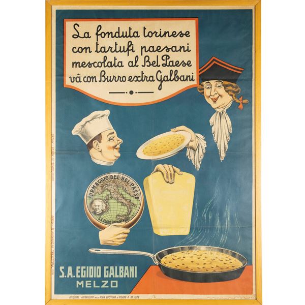 100x70 cm."Formaggio del Bel Paese", litografia a colori offset, edizione originale, realizzato da Grafiche Amar, Milano per S.A. Egidio Galbani, Melzo, entro cornice