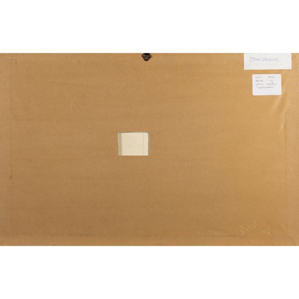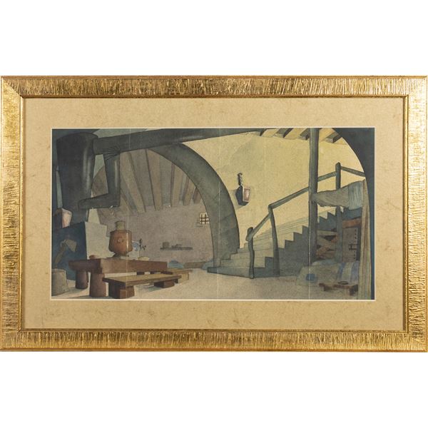 "Bozzetto per scenografia", acquerello su carta, firmato al retro, entro cornice