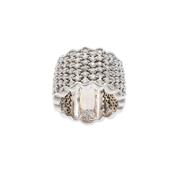 Anello a fascia in oro bianco 18kt e diamanti