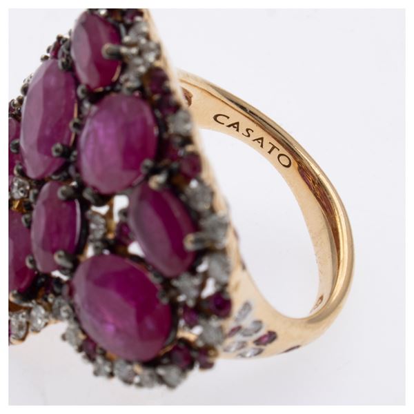 Anello cuore in oro rosa e bianco 18kt e rubini