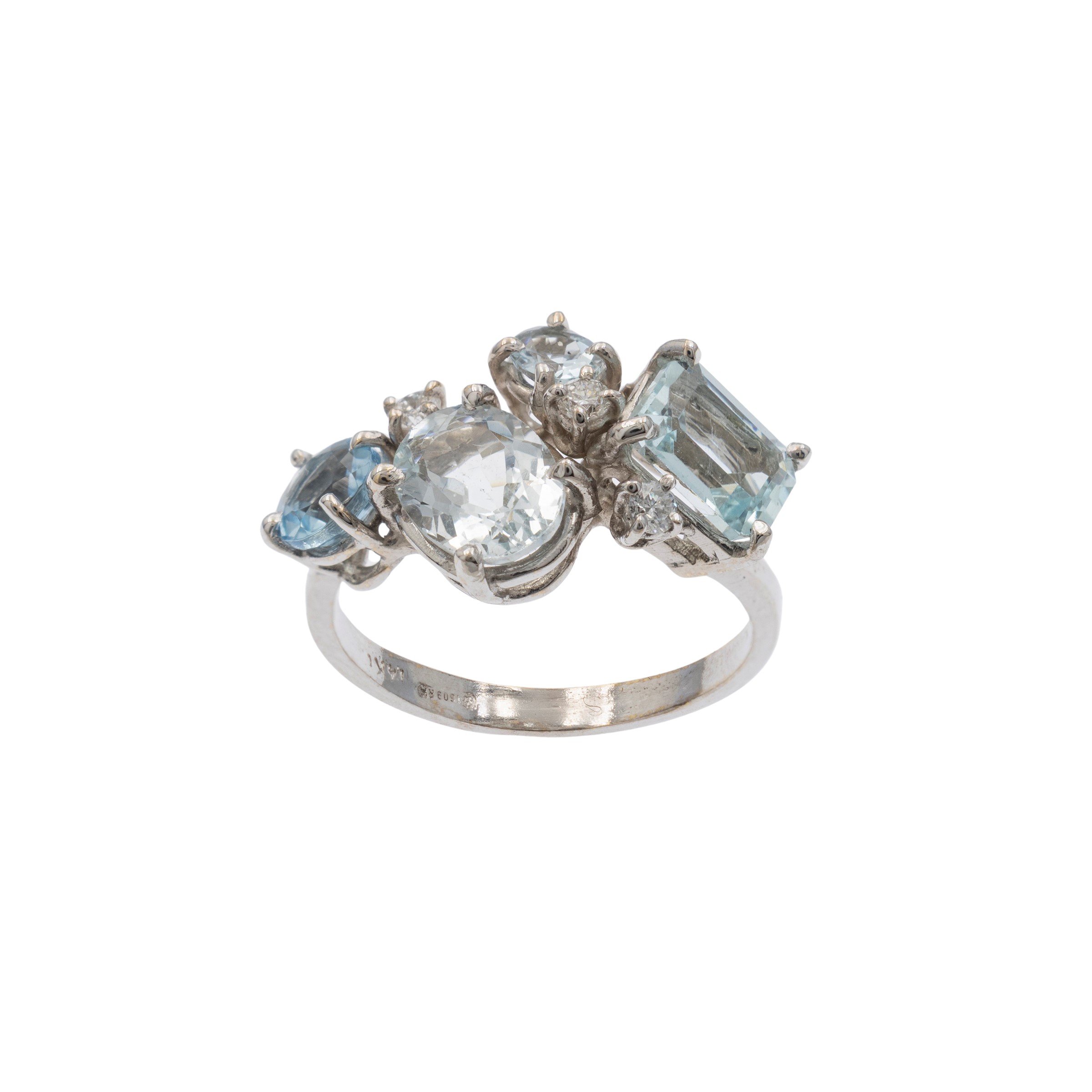 Anello in oro bianco 14kt acquamarine e diamanti
