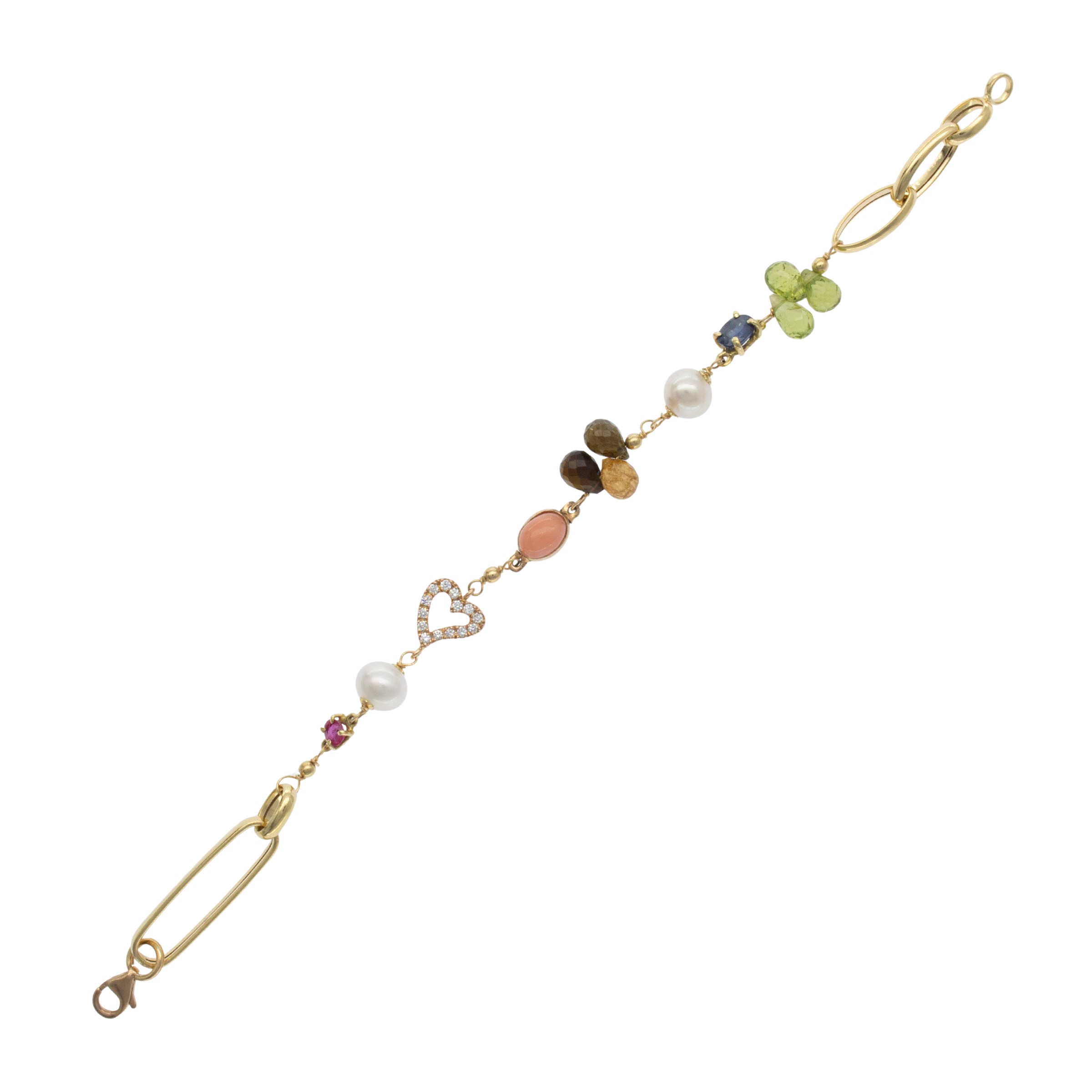 Bracciale con cuore in oro giallo 18kt e diamanti
