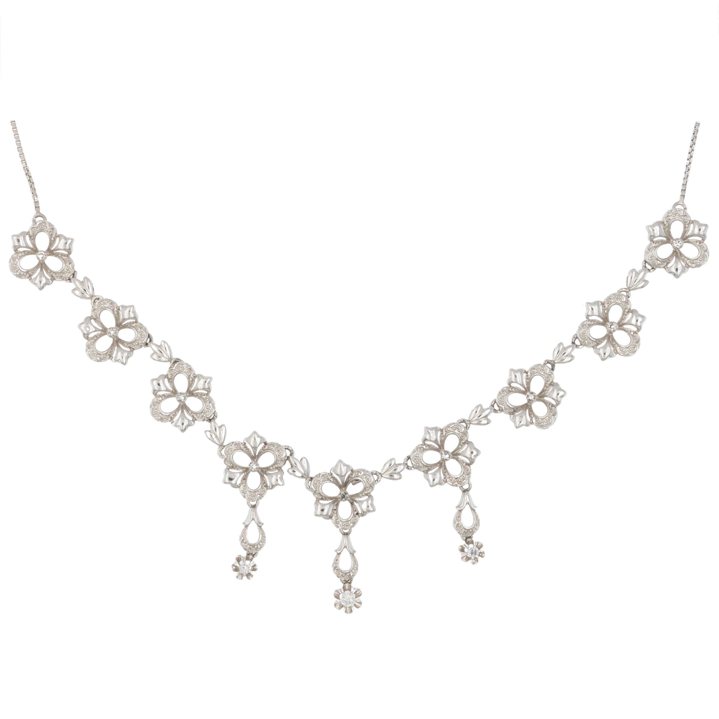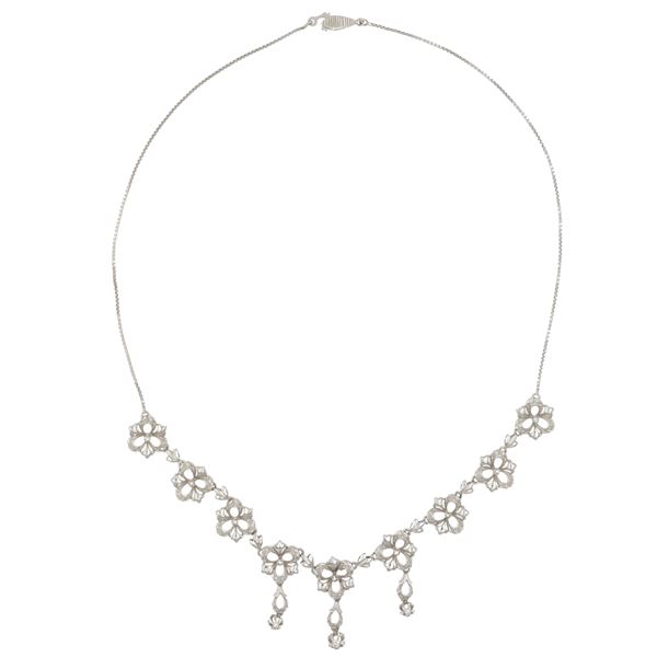 Collana a motivo floreale in oro bianco 18kt e diamanti