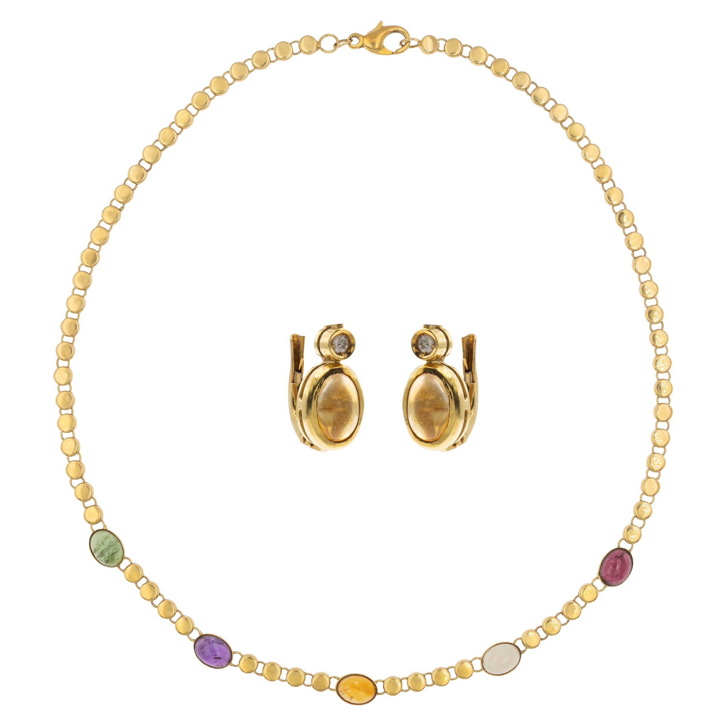 tormaline di diverso colore taglio cabochon, lunghezza collana 40 - orecchini 1,9 cm.