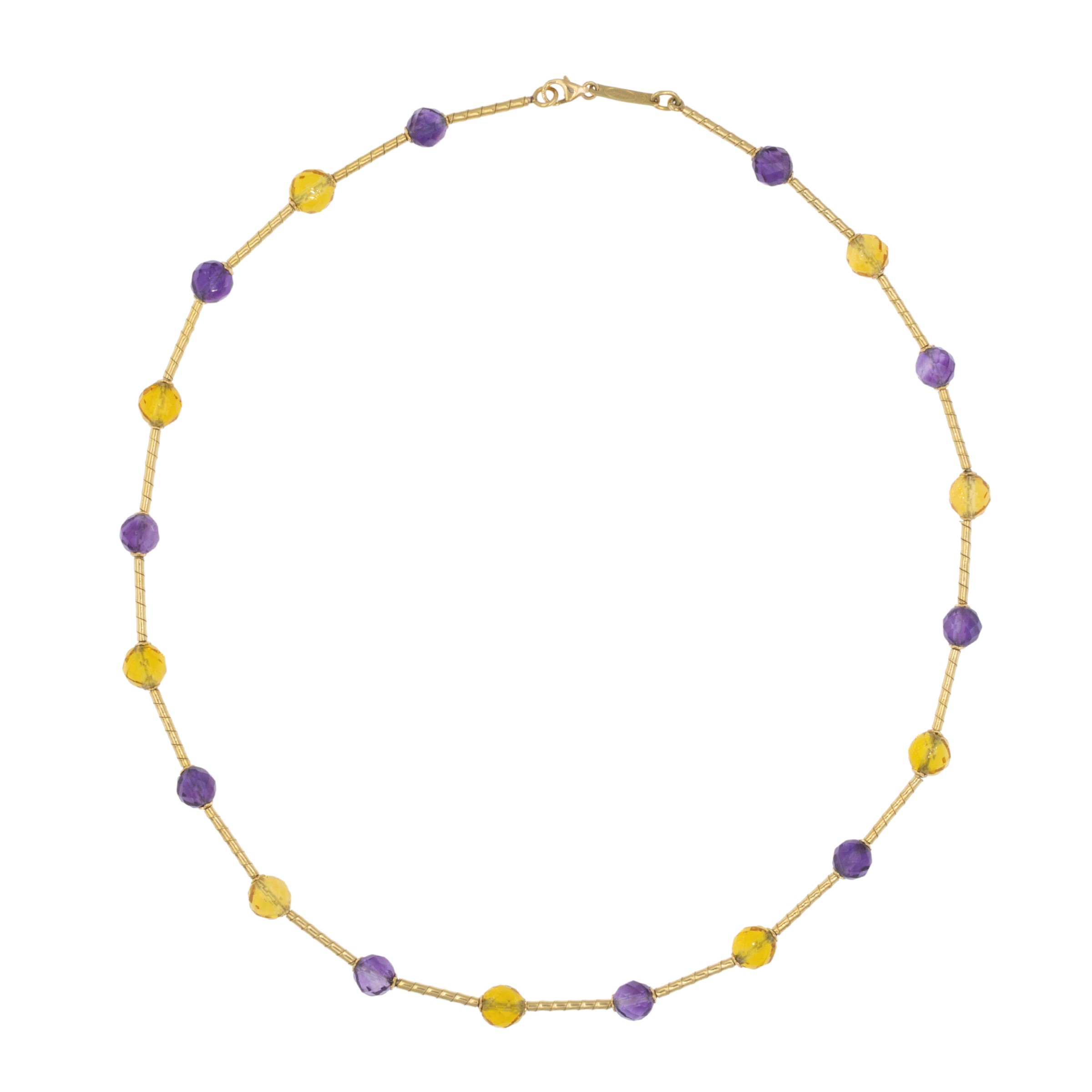 Collana in oro giallo 18kt sfere di ametista e quarzo citrino