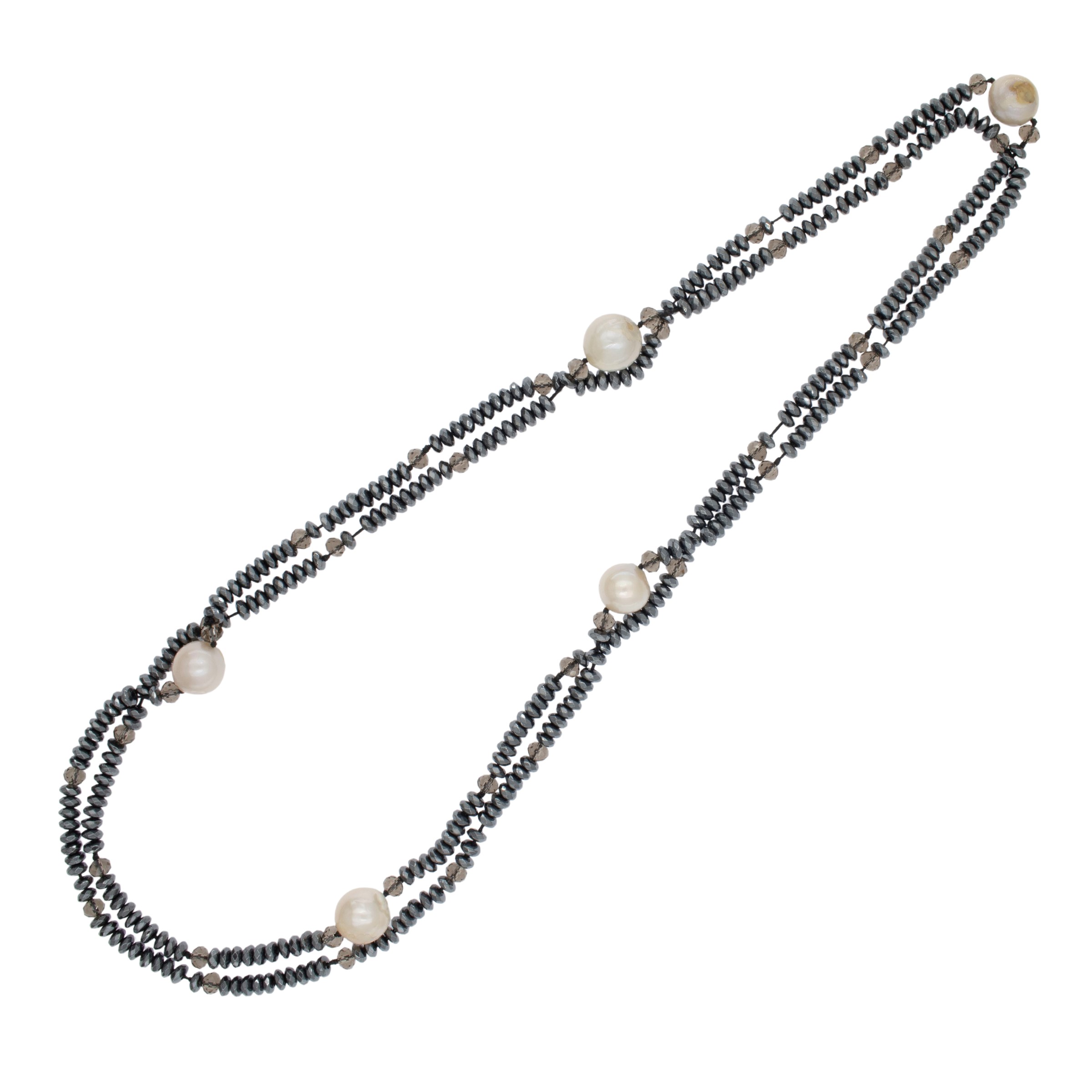 peso 110 gr.composta da ematite, citrini fumé e perle barocche, lunghezza 130 cm.