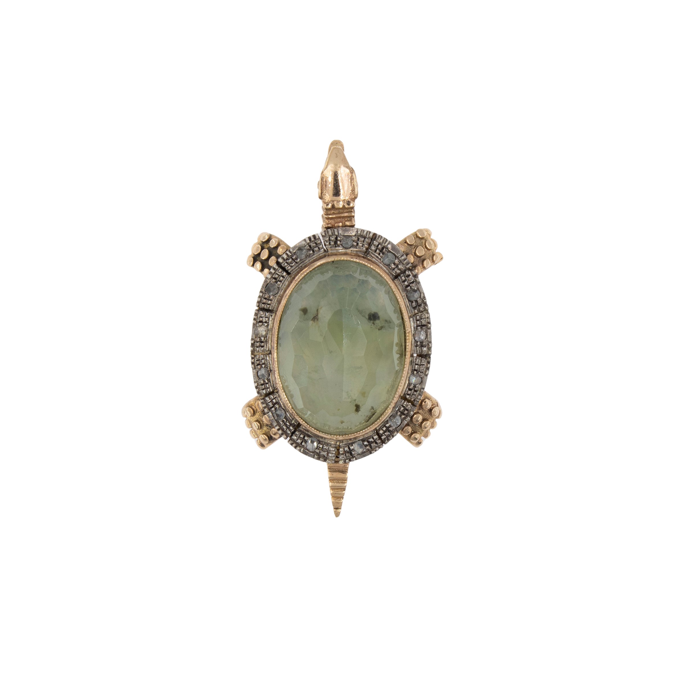 Pendente tartaruga in oro rosa 14kt argento e giada