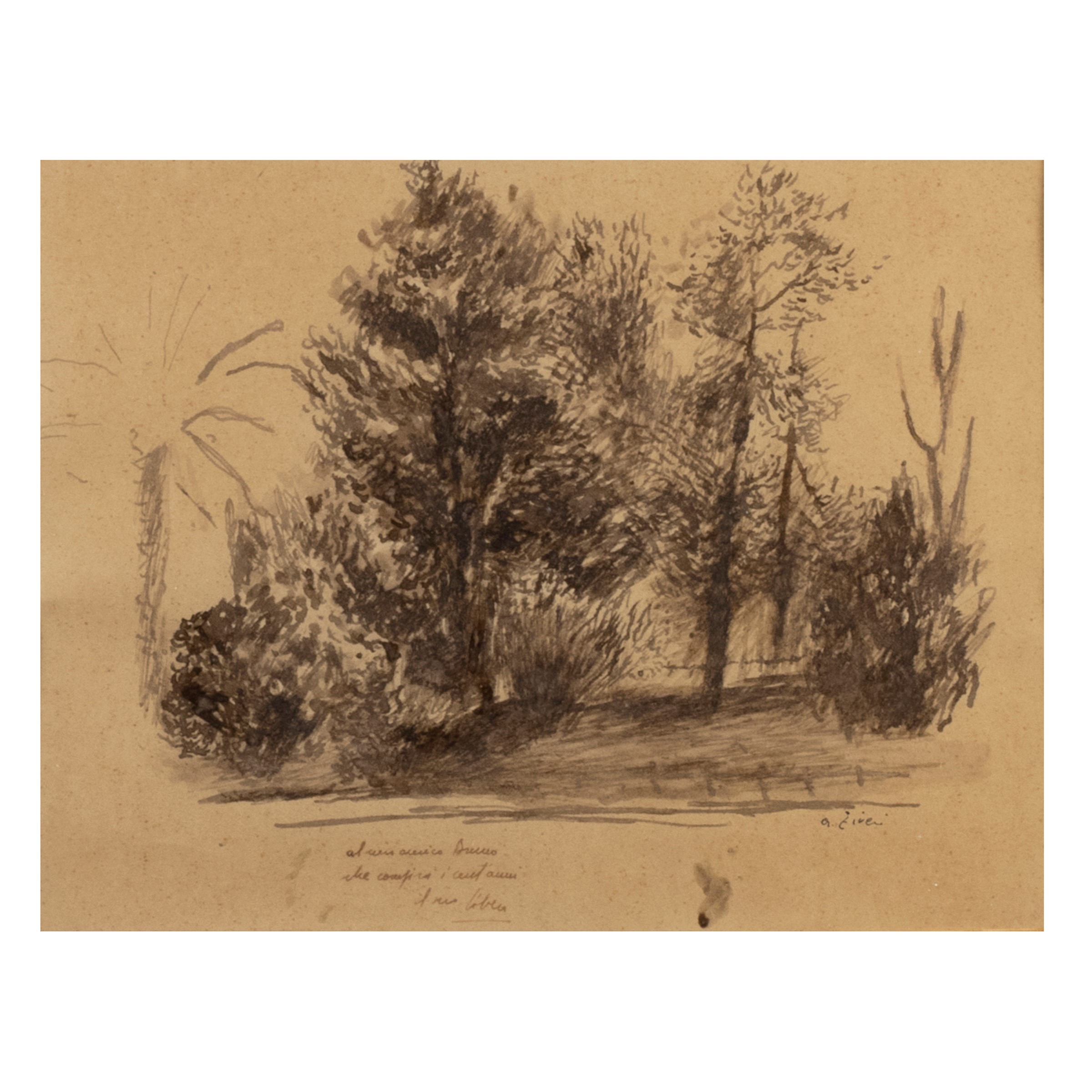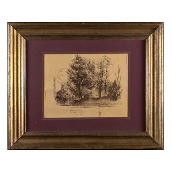 20,5x26,5 cm."Paesaggio", acquerello su carta, firmato in basso a destra, dedicato in basso a sinistra, entro cornice