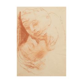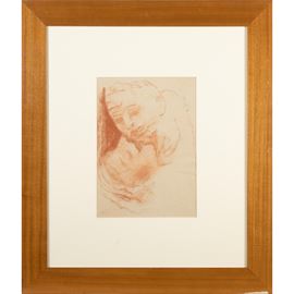 "Amanti", sanguigna su carta, firmato in basso a destra, entro cornice