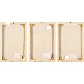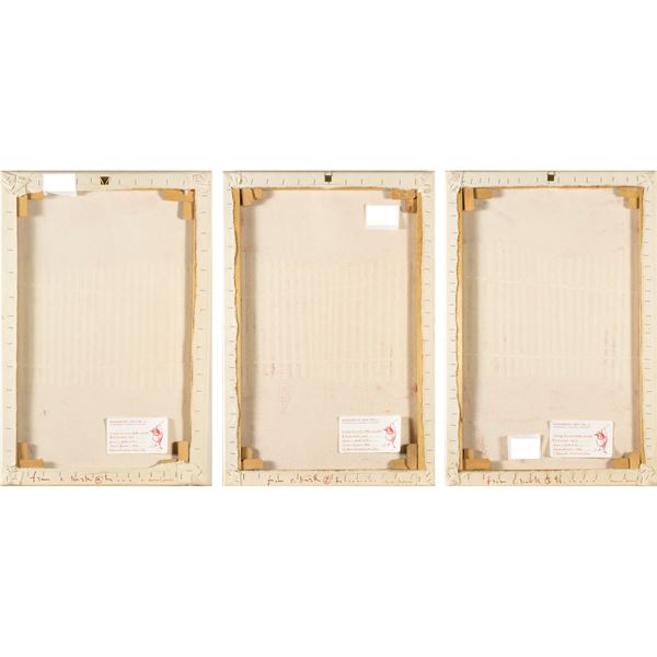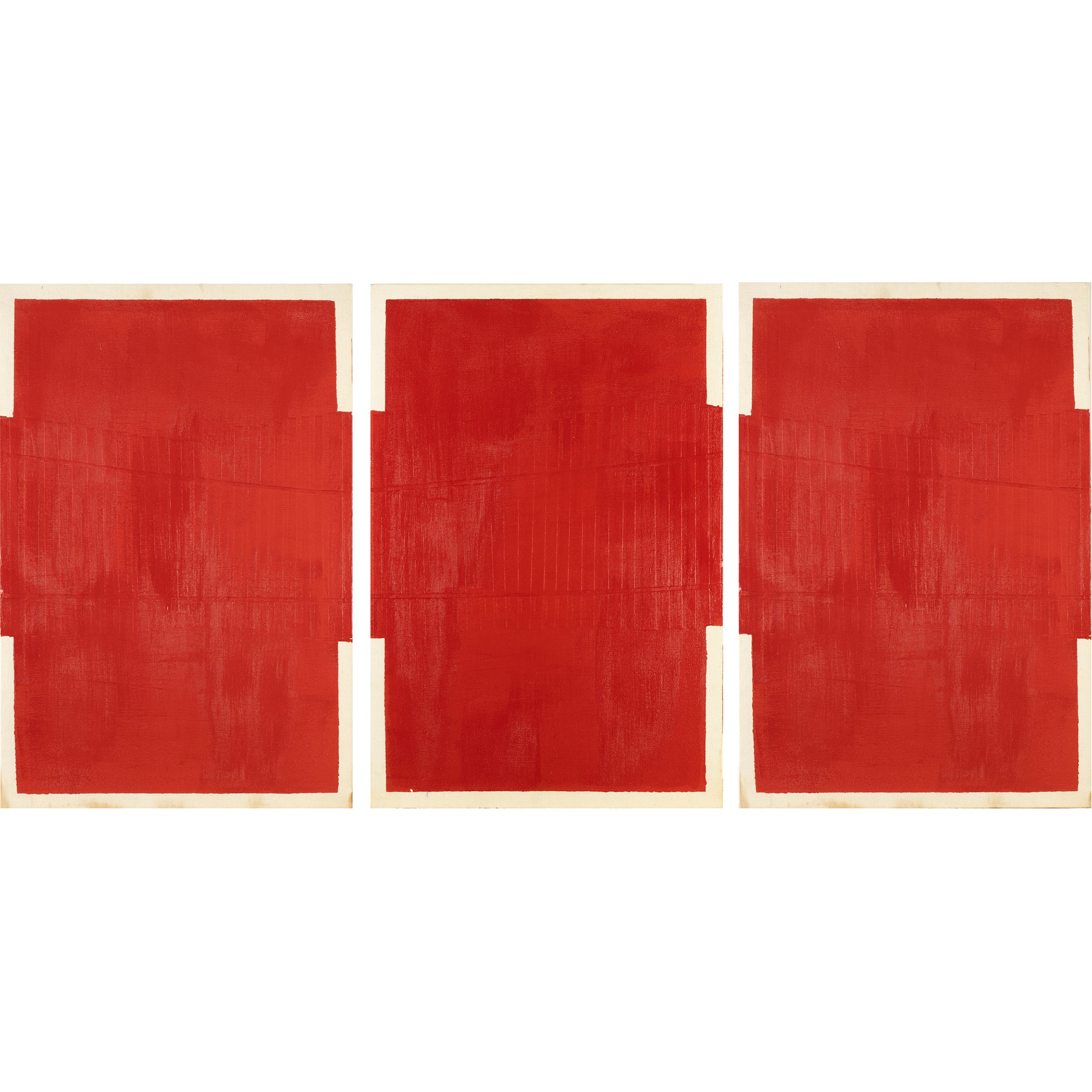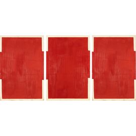 60x120 cm."From C. Park to...", 1999, trittico pigmento rosso e pvc film su tela, titolato e firmato sul retro delle tre tele