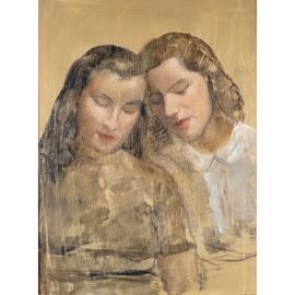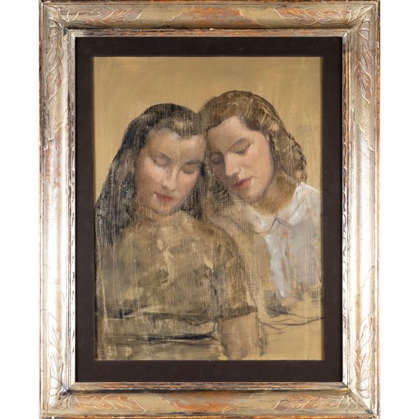 60x45 cm."Due fanciulle", anni '40, olio su tela, entro cornice