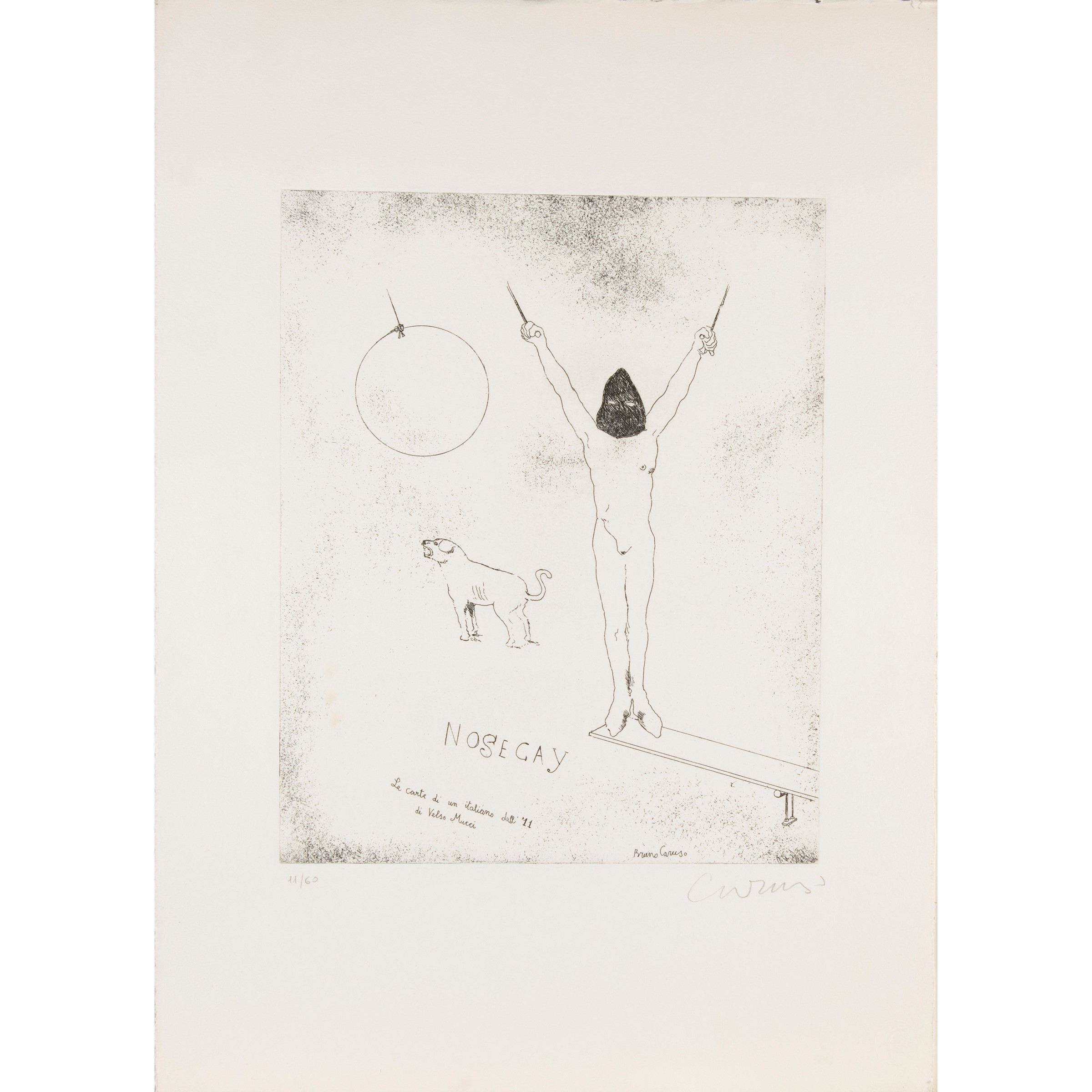 50,5x35,5 cm."Nosegay. Le carte di un italiano dell'11 di Velso Mucci", acquaforte, es. 11/60, firmato in basso a destra nella lastra, firmato in basso a destra, timbro a secco in basso a destra, foglio libero