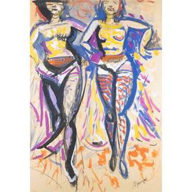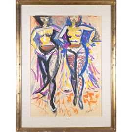 68x47 cm."Due giovani", tecnica mista su carta, firmato in basso a destra, entro cornice