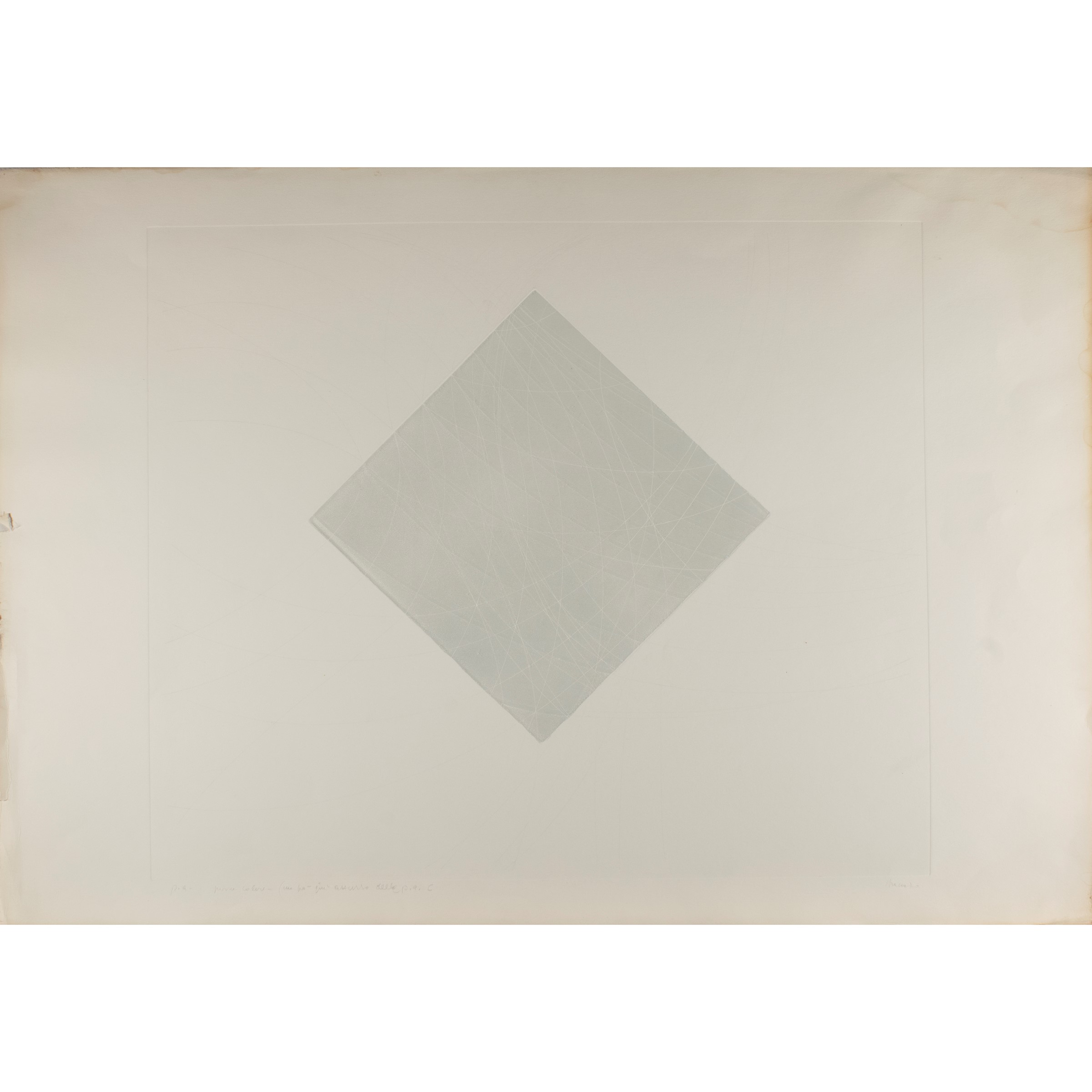 63x63 cm."Senza titolo", 1970, litografia a colori, es. p.a., firmata e datata in basso a destra, foglio libero