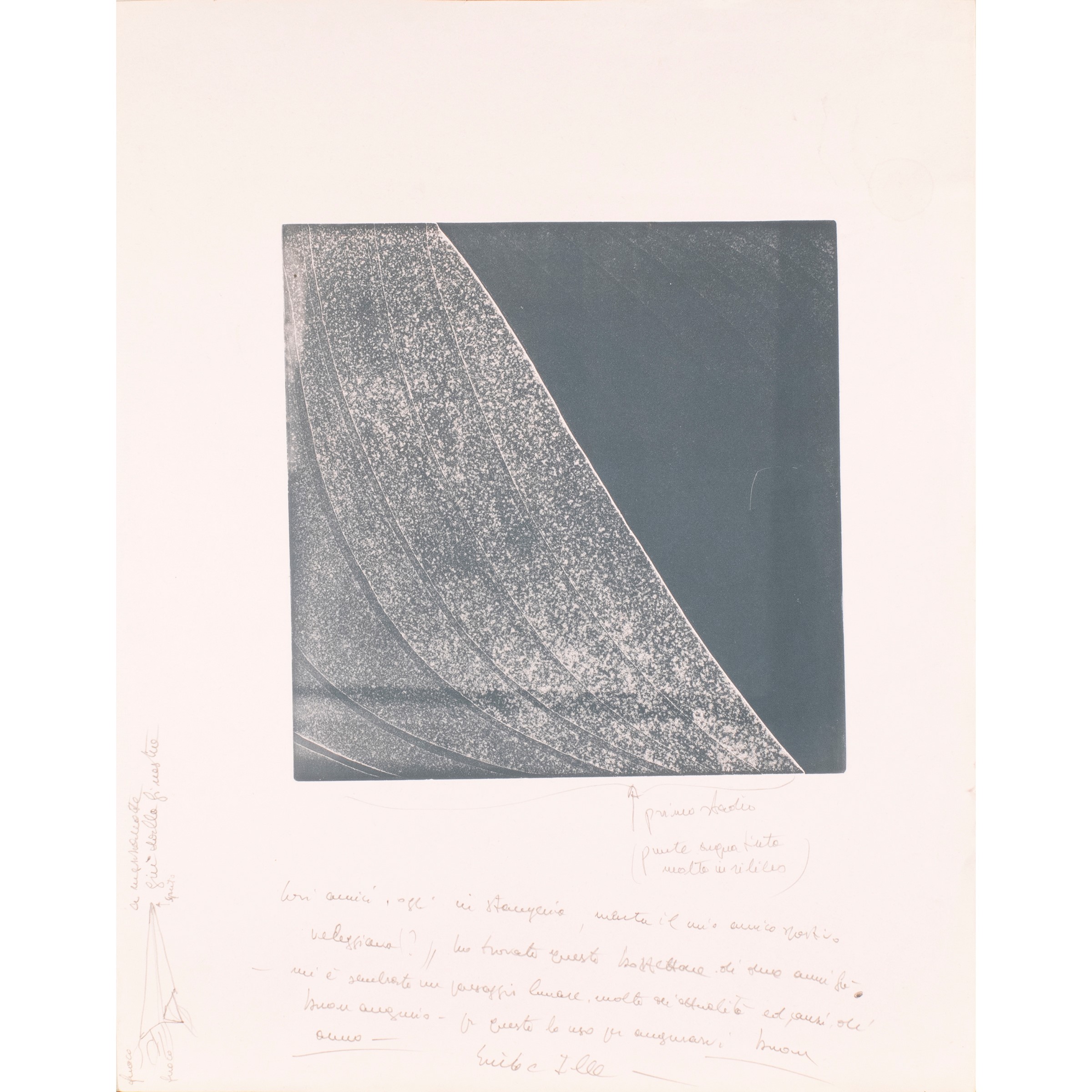 54,5x43 cm."Senza titolo", acquatinta, primo stadio (punta acquatinta molto a rilievo), firmata in basso al centro, foglio libero.