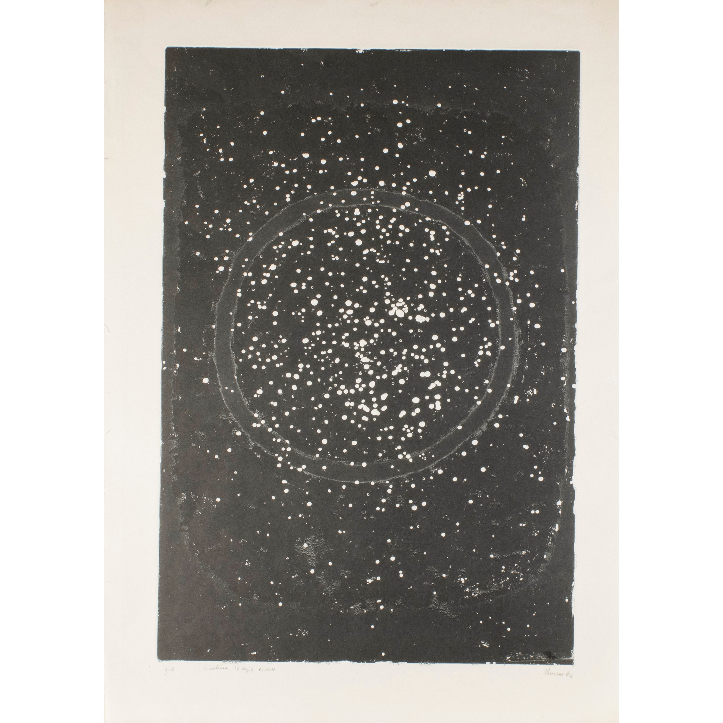 70x49,5 cm."Senza titolo", 1966, acquatinta a colori, es. p.a., firmata e datata in basso a destra, foglio libero.