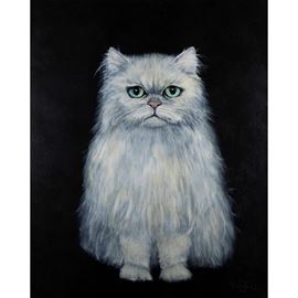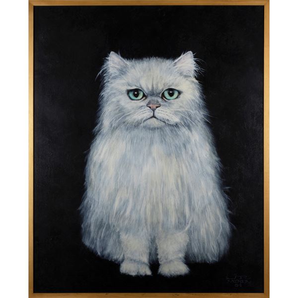 100x80 cm."Gatto", 1984, olio su tela, firmato e datato in basso a destra, entro cornice
