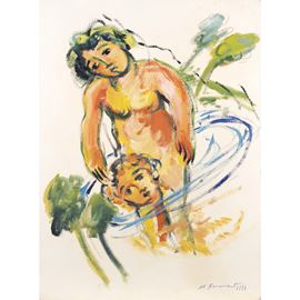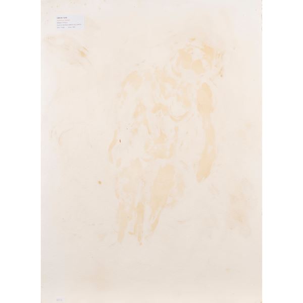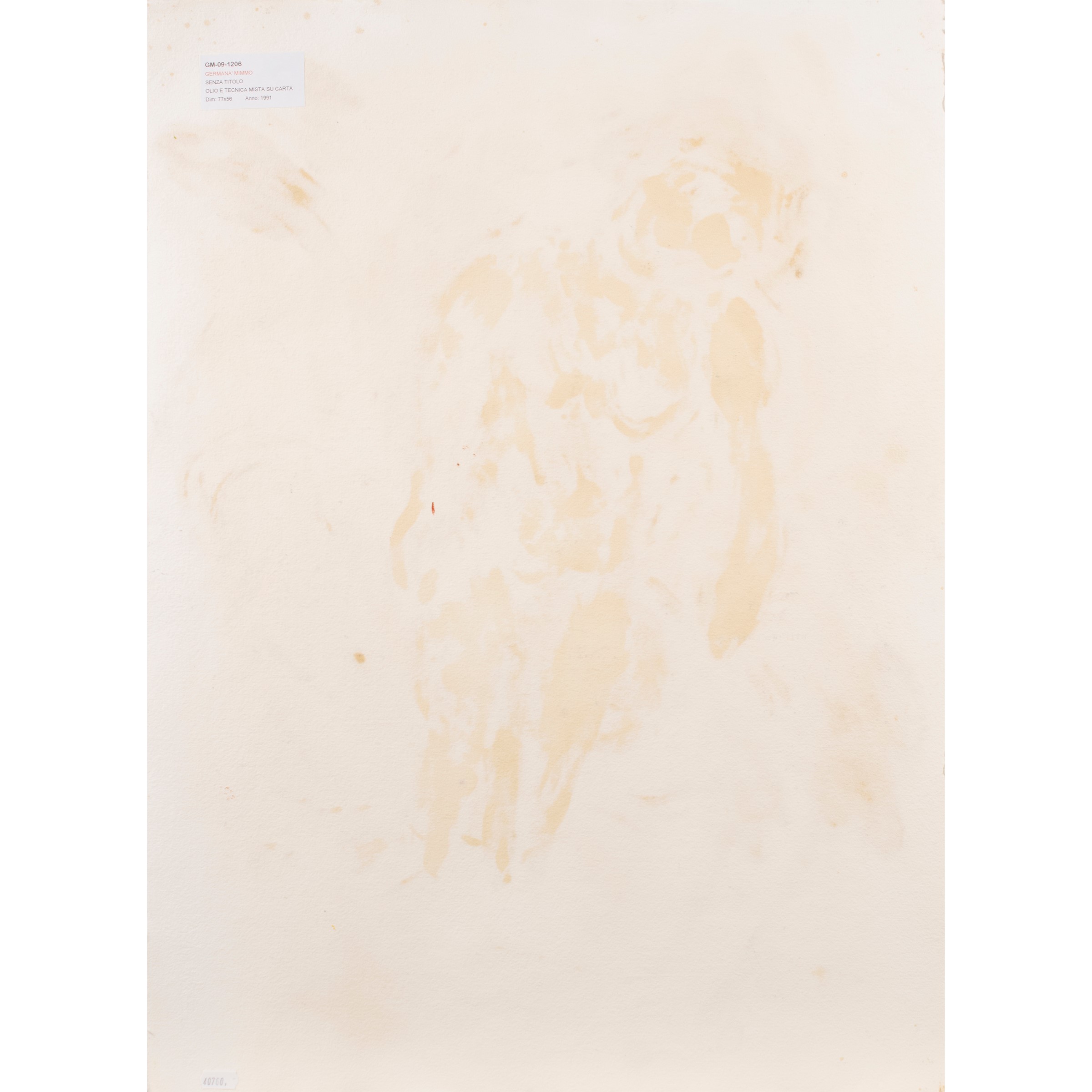 74x55 cm."Senza titolo", 1991, olio e tecnica mista su carta, firmato e datato in basso a destra, foglio libero