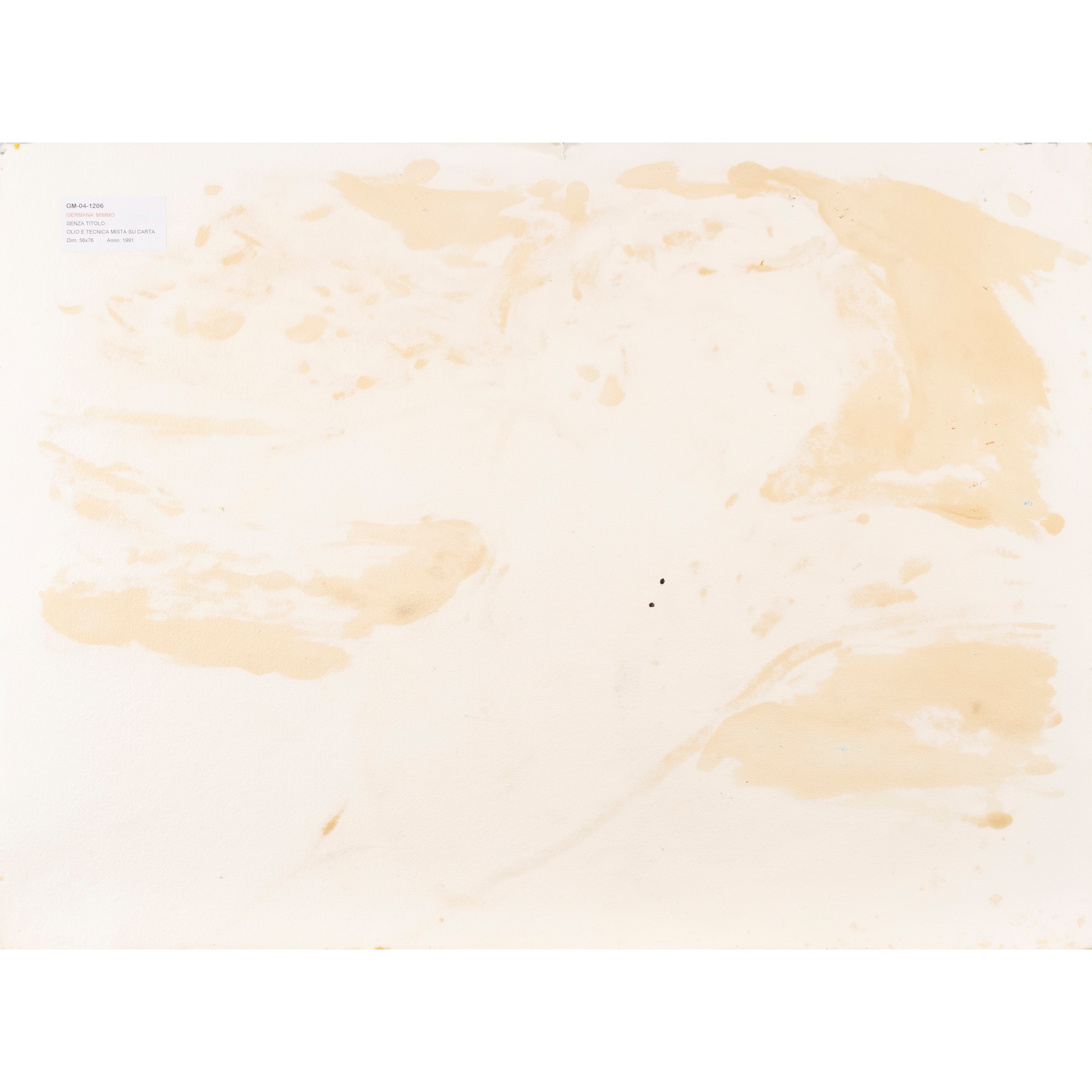 55x74 cm."Senza titolo", 1991, olio e tecnica mista su carta, firmato e datato in basso a destra, foglio libero