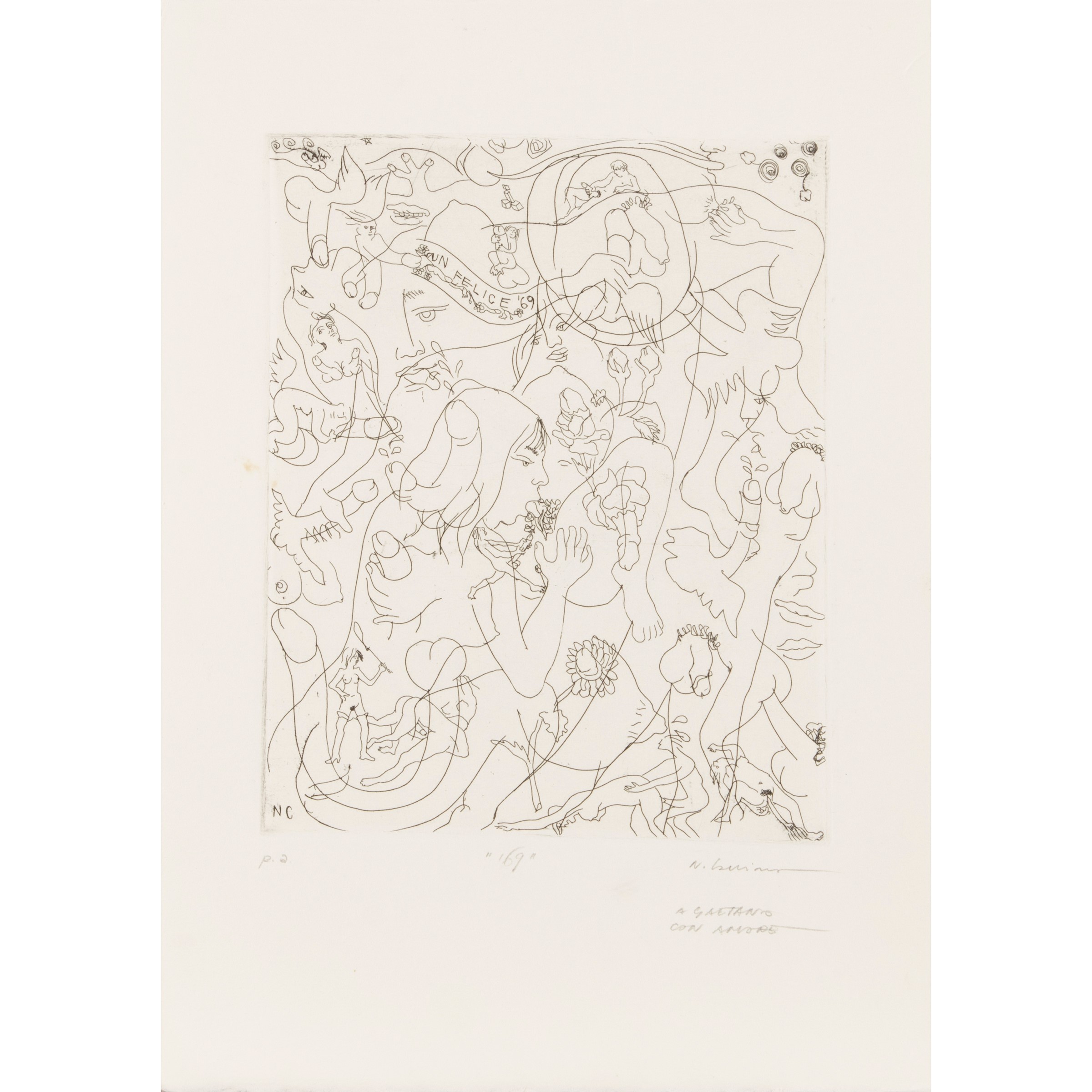 33,5x24 cm."69", acquaforte, es. p.a., firmato in basso a destra, titolato in basso al centro, dedicato in basso a destra, foglio libero