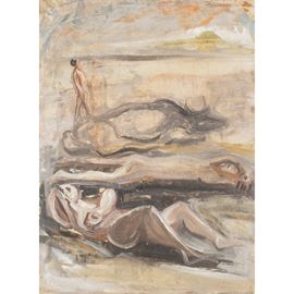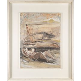 49,5x36,5 cm."Senza titolo", 1965, tecnica mista su carta applicata su tavoletta, firmato e datato in basso a destra, entro cornice