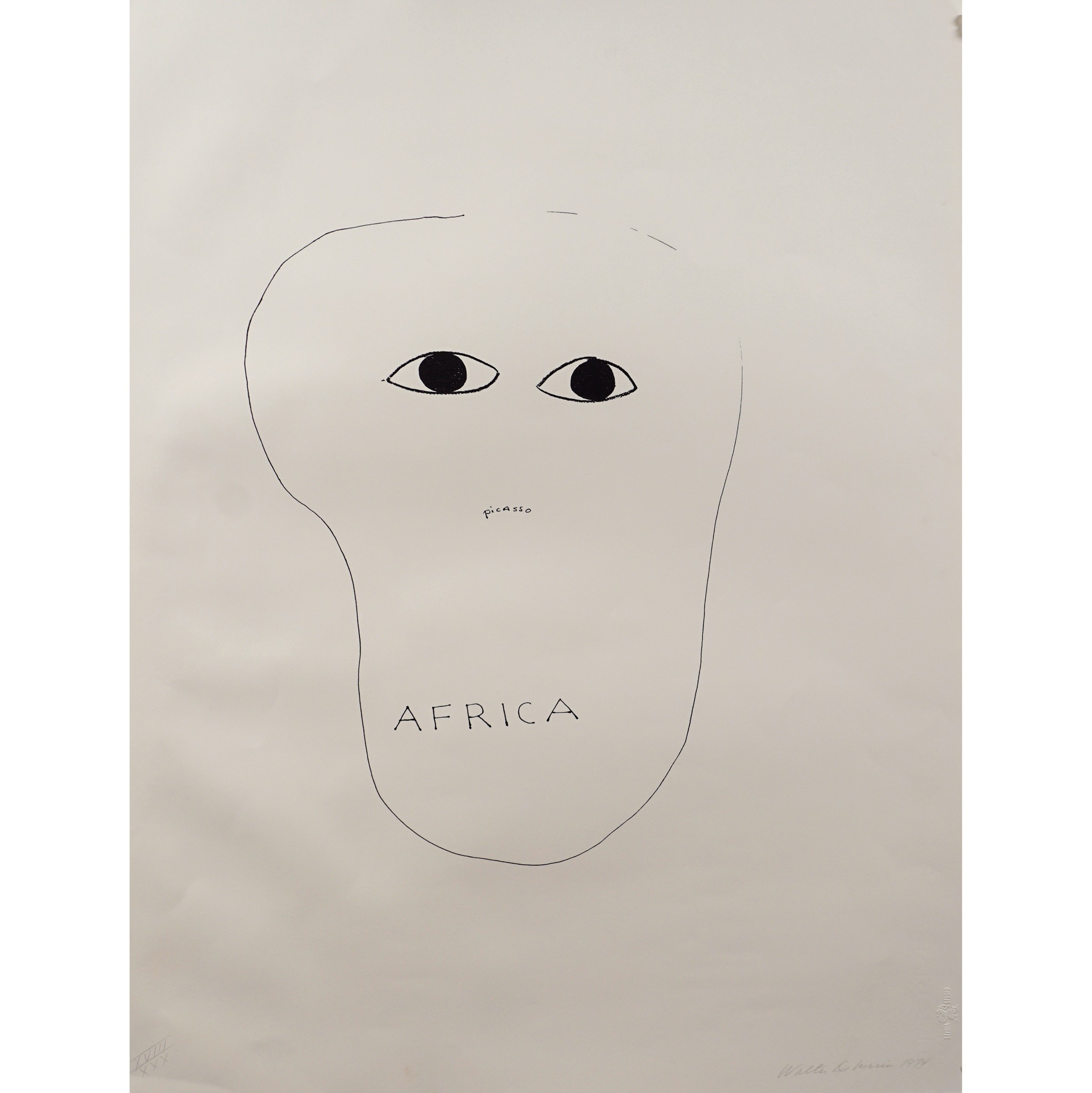 76,5x56 cm."Picasso Africa", 1974, litografia, es. XVIII/XXX, firma in basso a destra, tiratura in basso a sinistra, sul foglio timbro a secco Styria Studio, foglio libero