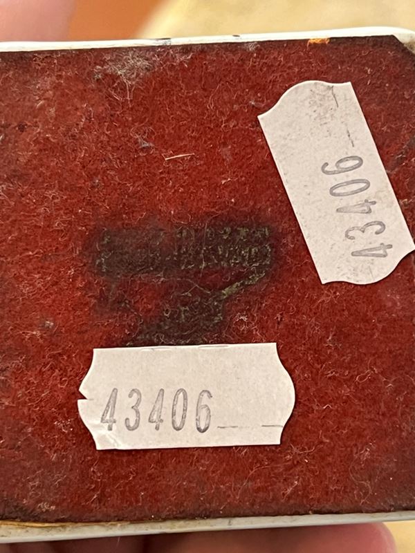 fermacarte in ceramica policroma, marchio della produzione, lievi usure