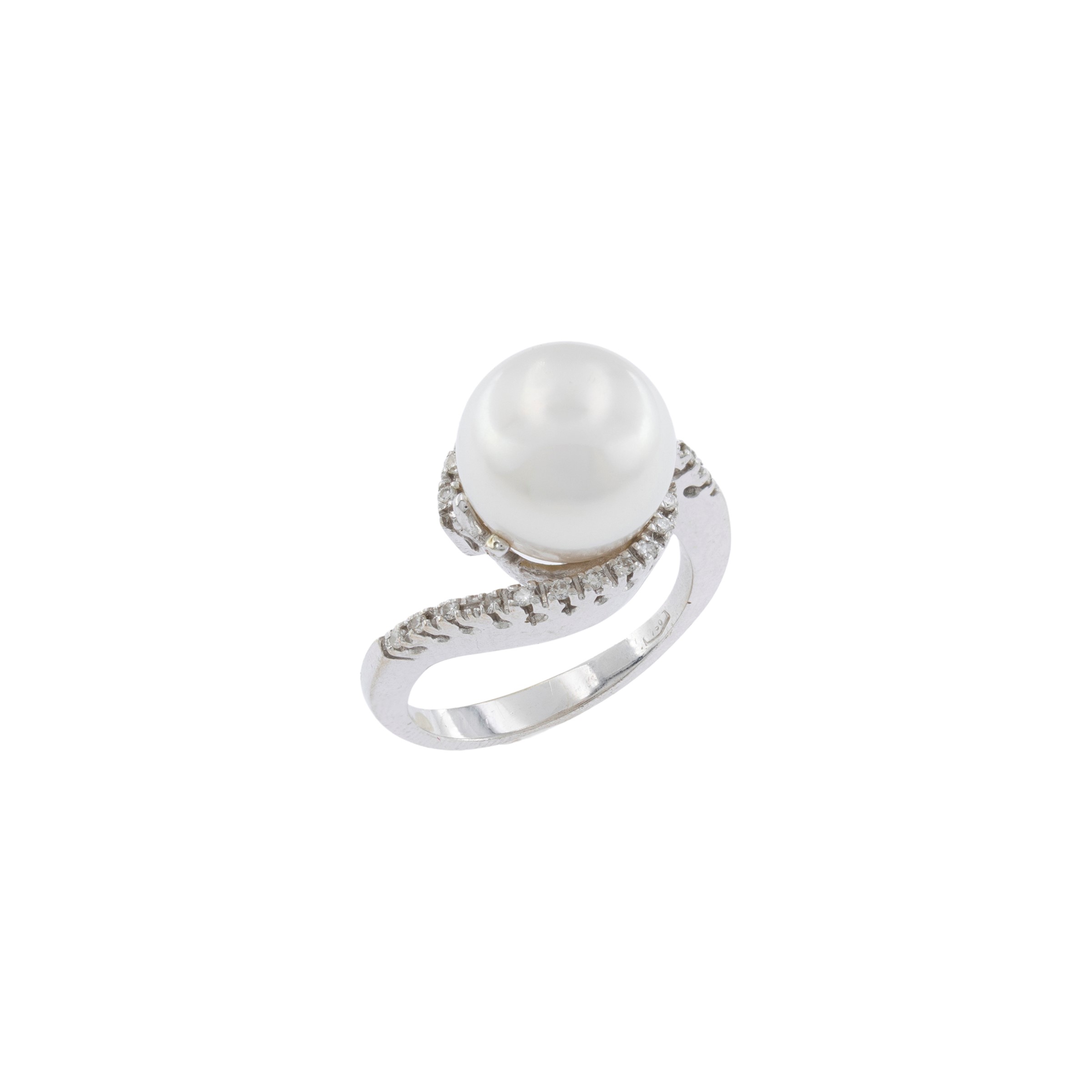 Anello in oro bianco 18kt perla coltivata e diamanti
