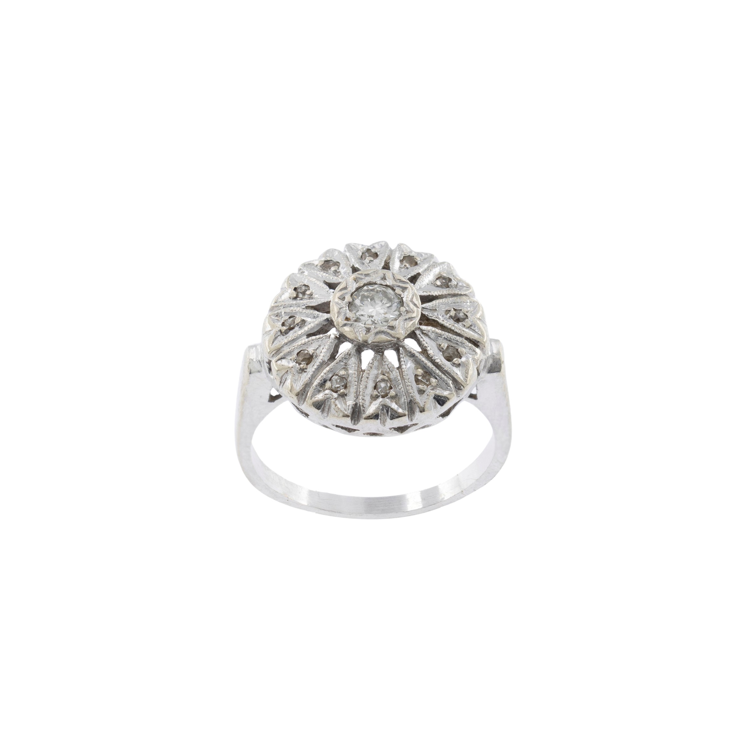 Antico anello in oro bianco 18kt con diamante