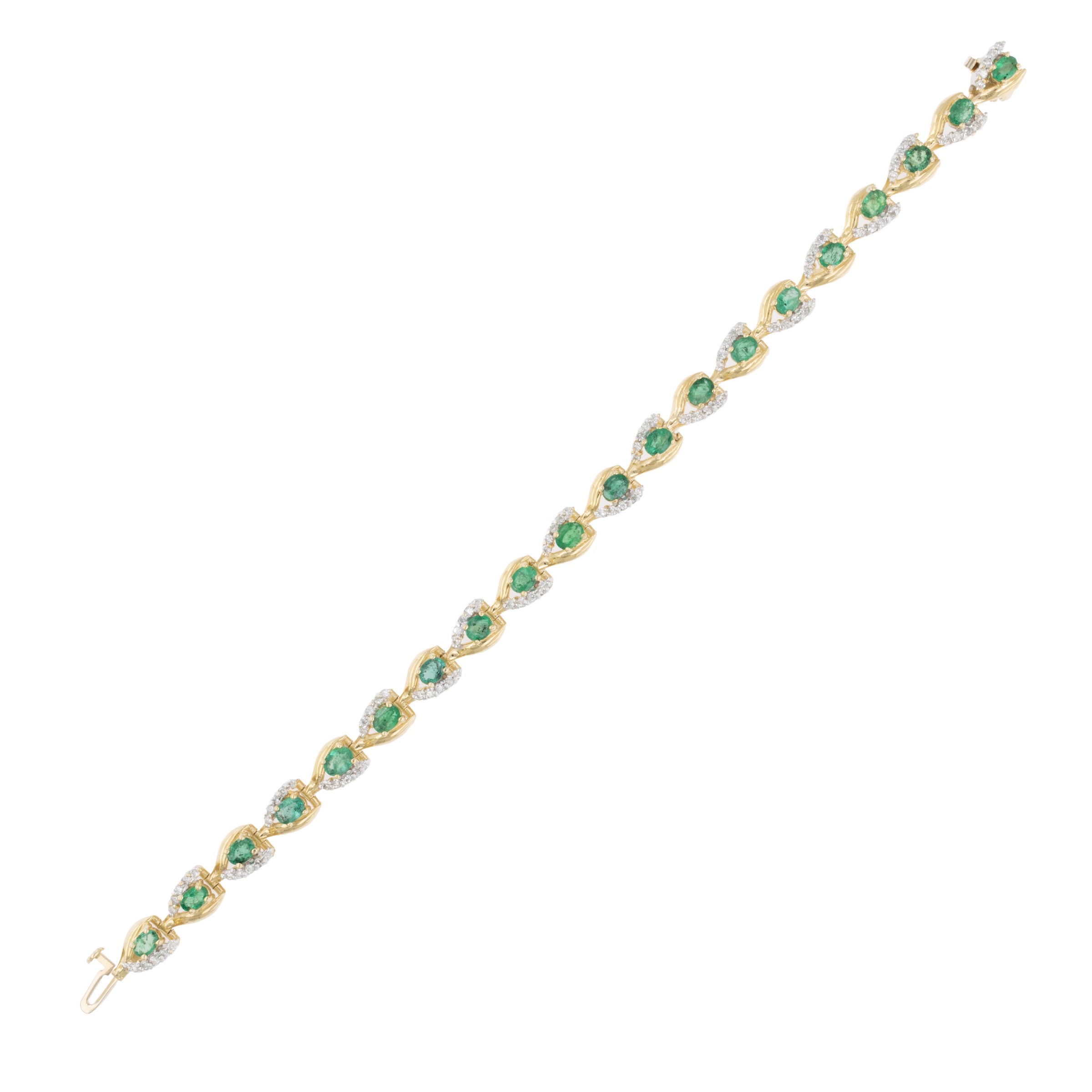 Bracciale in oro giallo e bianco 14kt smeraldi e diamanti