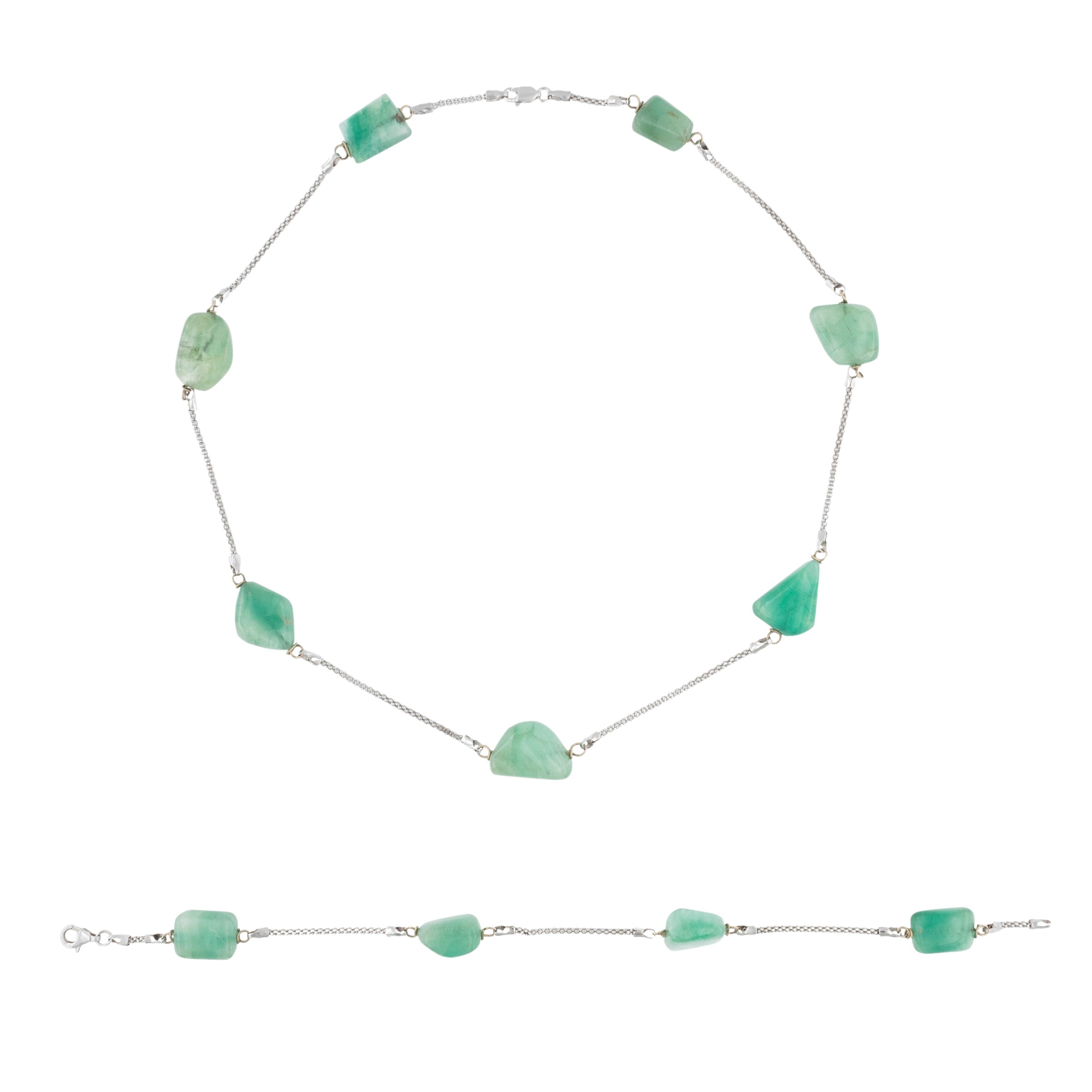 Demi parure in oro bianco 18kt e radici di smeraldo