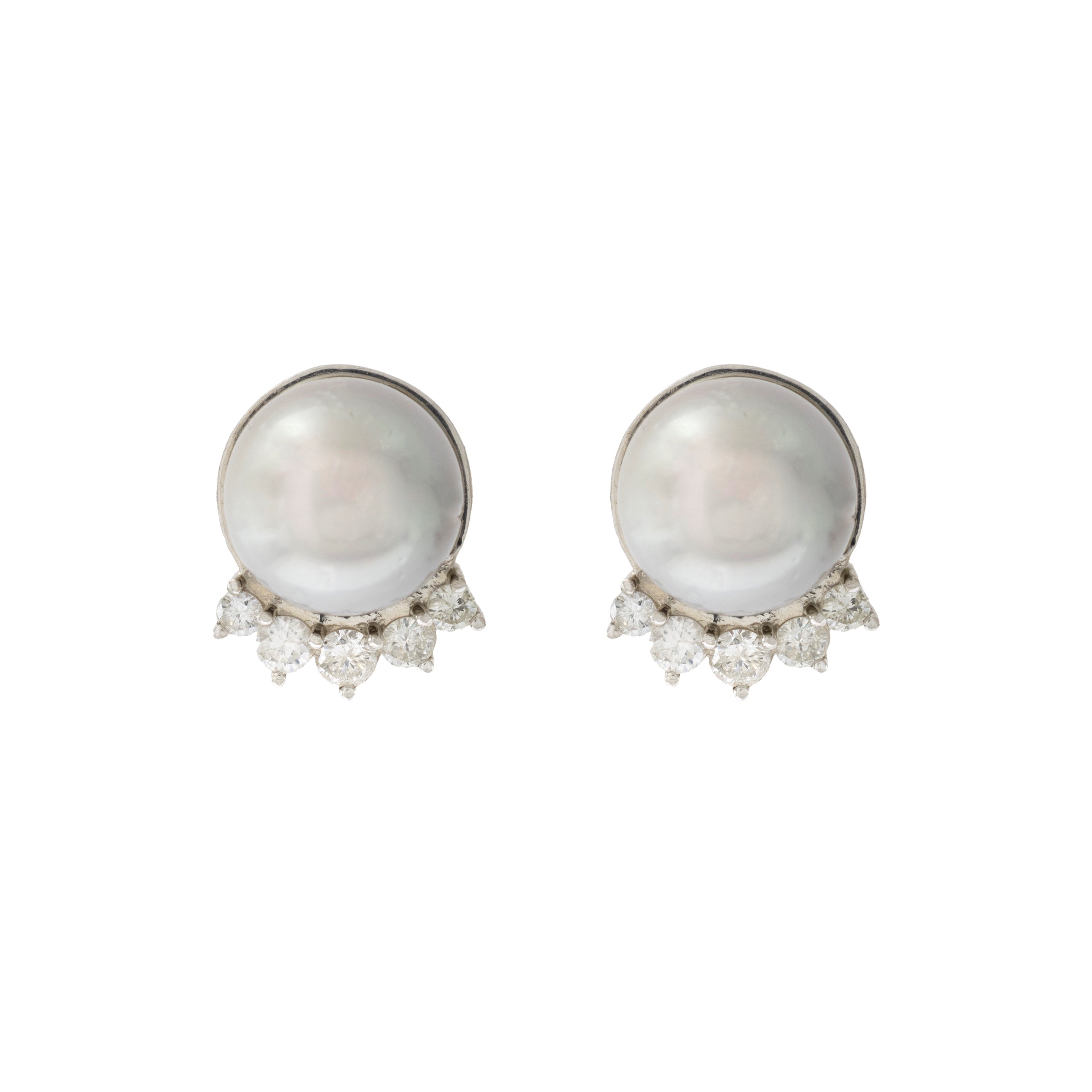 Orecchini a lobo in platino perle grigie South Sea e diamanti