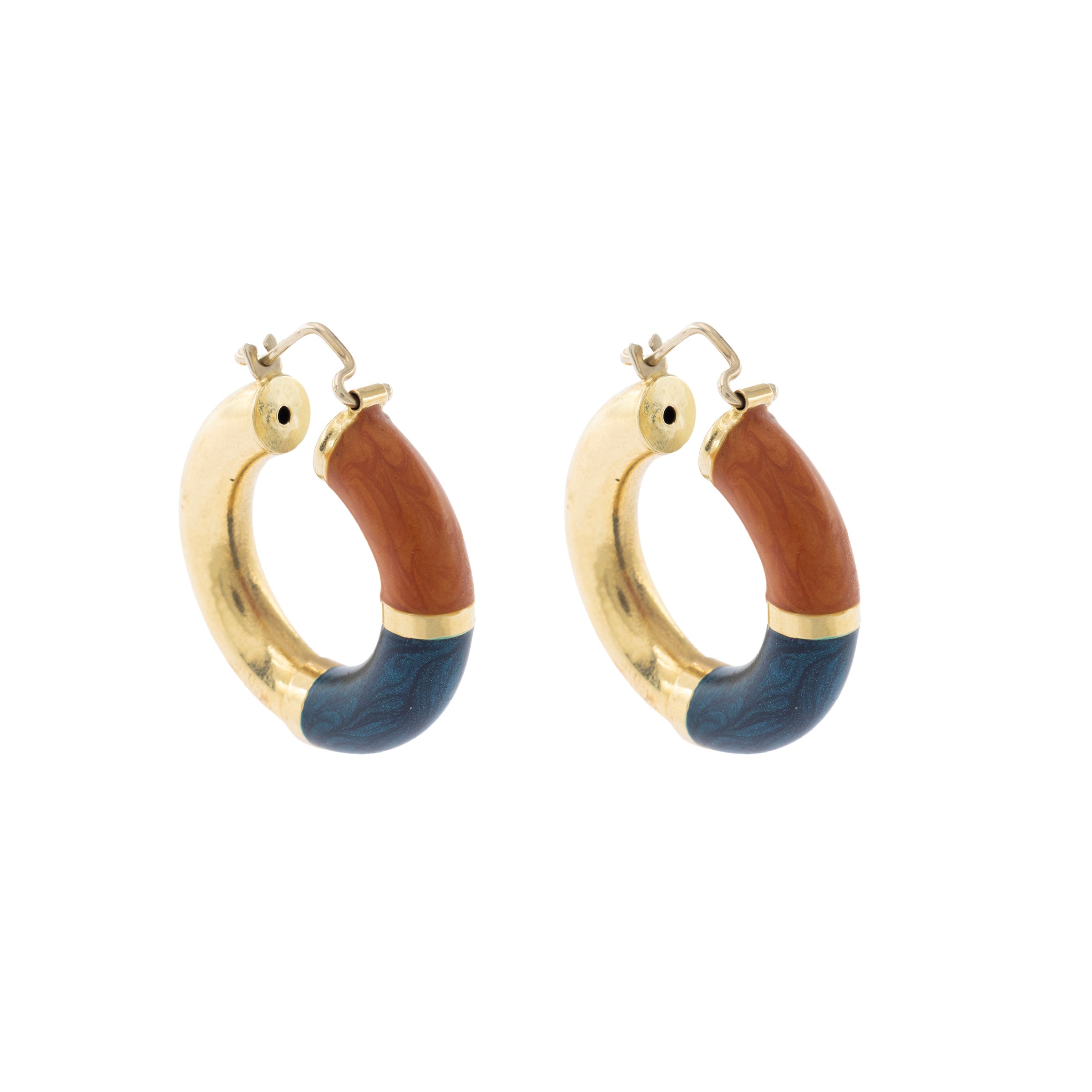 Orecchini cerchi in oro giallo 18kt e smalto policromo