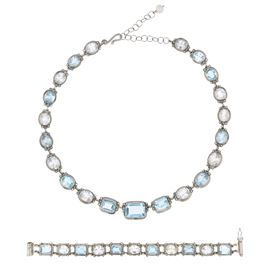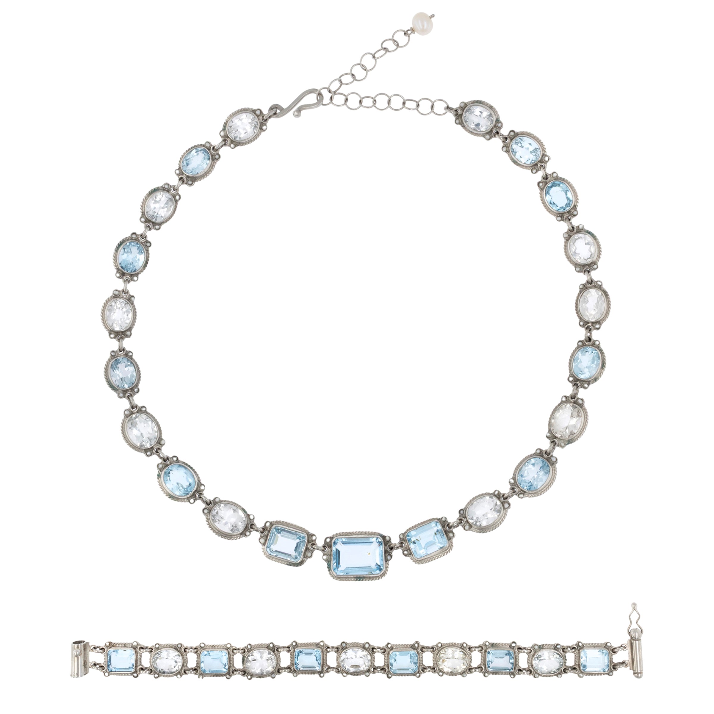 in rame argentato, topazi azzurri, quarzo bianco e perline, bracciale chiusura in argento, lunghezza collana 45 cm. regolabile - bracciale 18 cm.