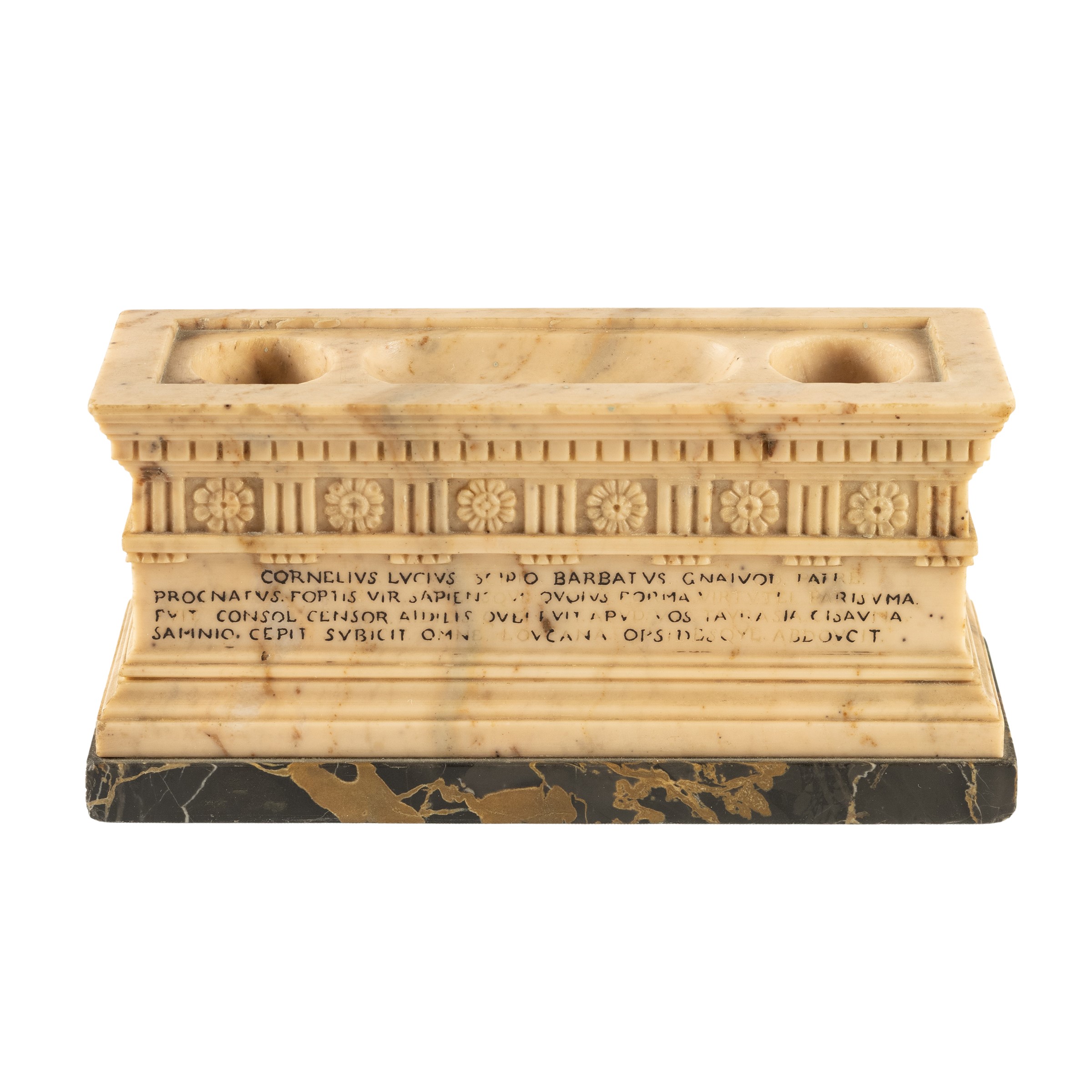 7,5x16x5 cm.modello del sarcofago di Lucio Cornelio Scipione, poggiante su base rettangolare, lievi usure