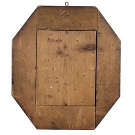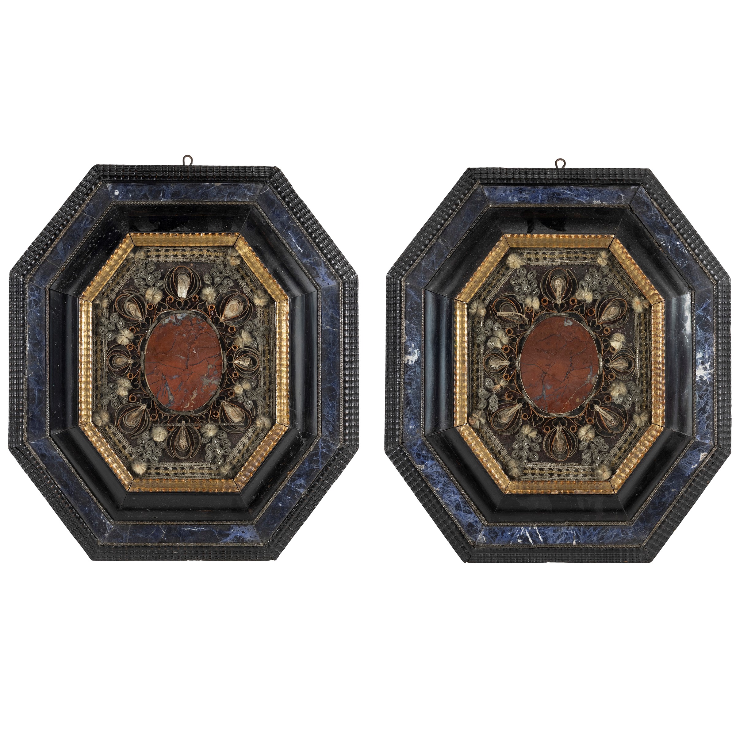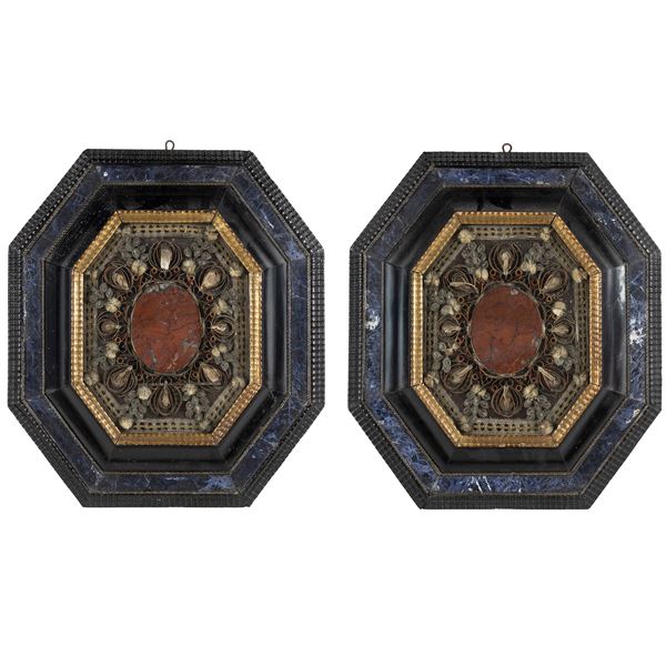 43,5x38x2,5 cm.in legno ebanizzato e dorato, filigrana di argento, lapislazzulo, pasta vitrea e marmo Diaspro