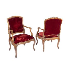 Coppia di poltrone in legno e tessuto