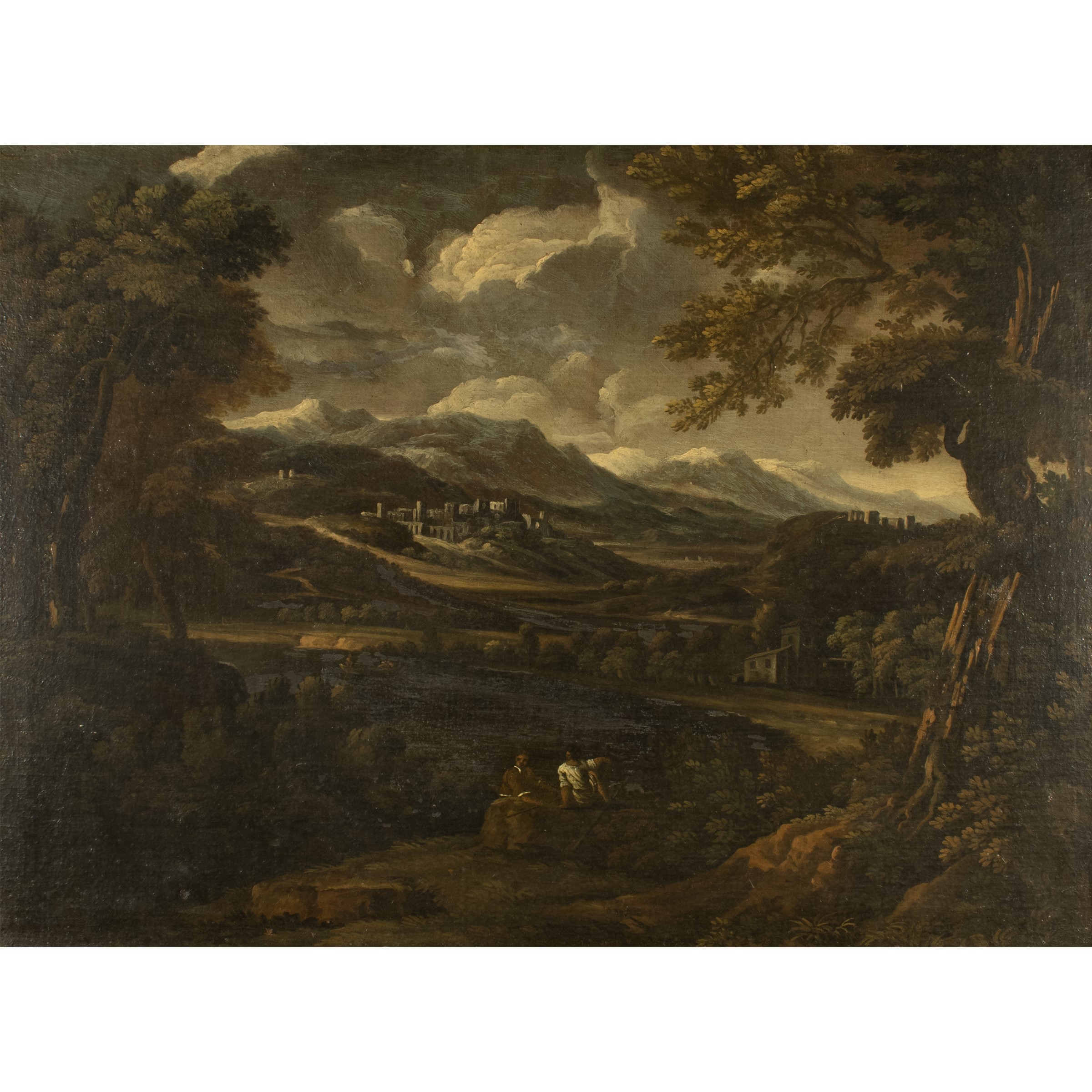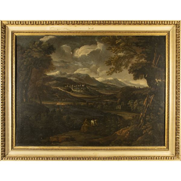 72x98 cm."Riposo dei pastori", olio su tela, entro cornice coeva