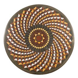 d. 81 cm.di forma circolare, lavorato con decoro geometrico in rosso e giallo antico e granito ad erbetta