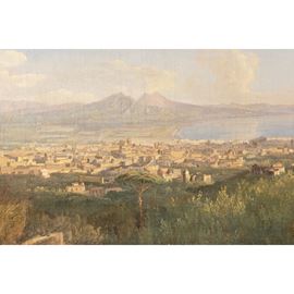 38,5x165,5 cm."Veduta di Napoli", olio su tela, entro cornice