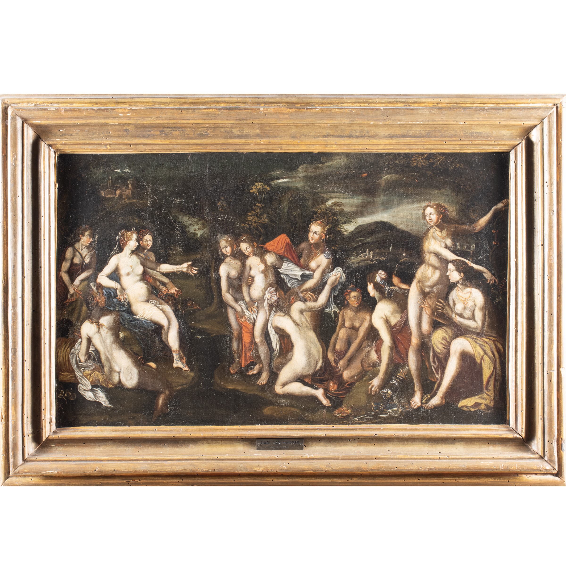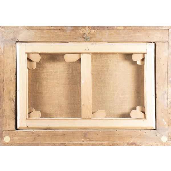 37x59,5 cm."Il giudizio di Venere", olio su tela, entro cornice