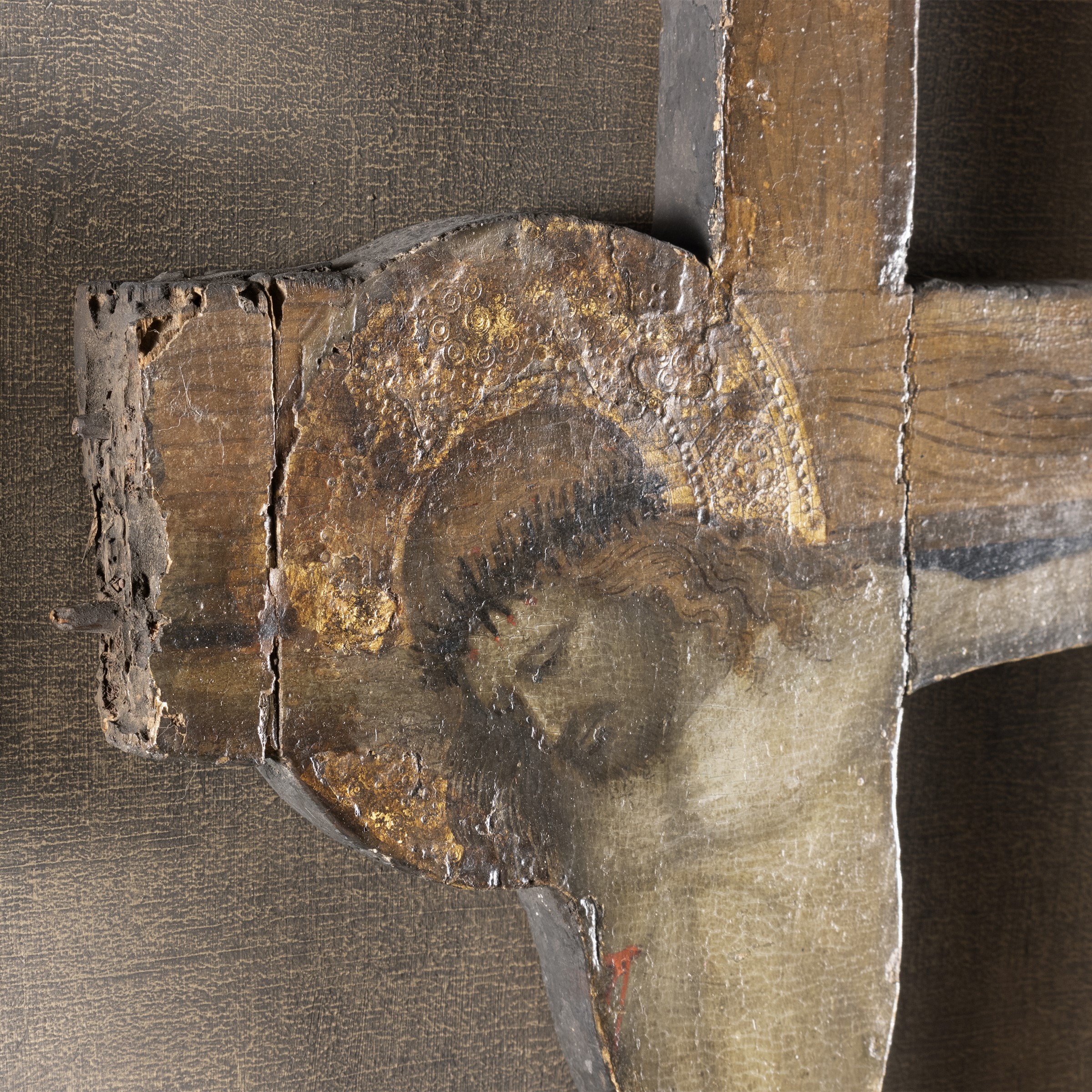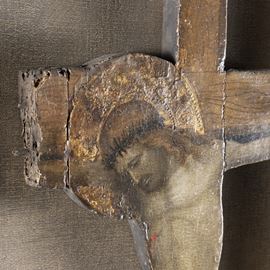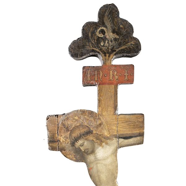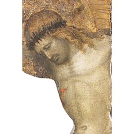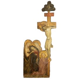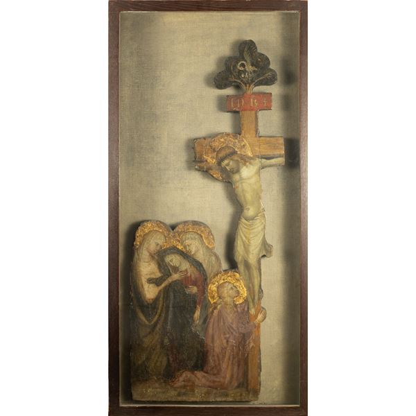 78x33 cm."Crocifissione", tempera e oro su tavola, entro teca