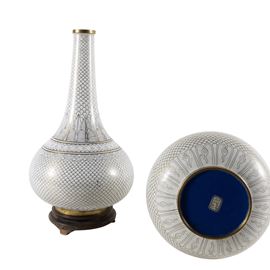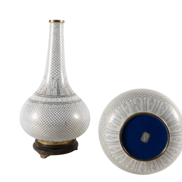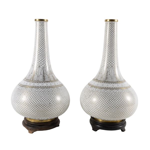 Coppia di vasi a bottiglia in smalto cloisonnè e bronzo dorato