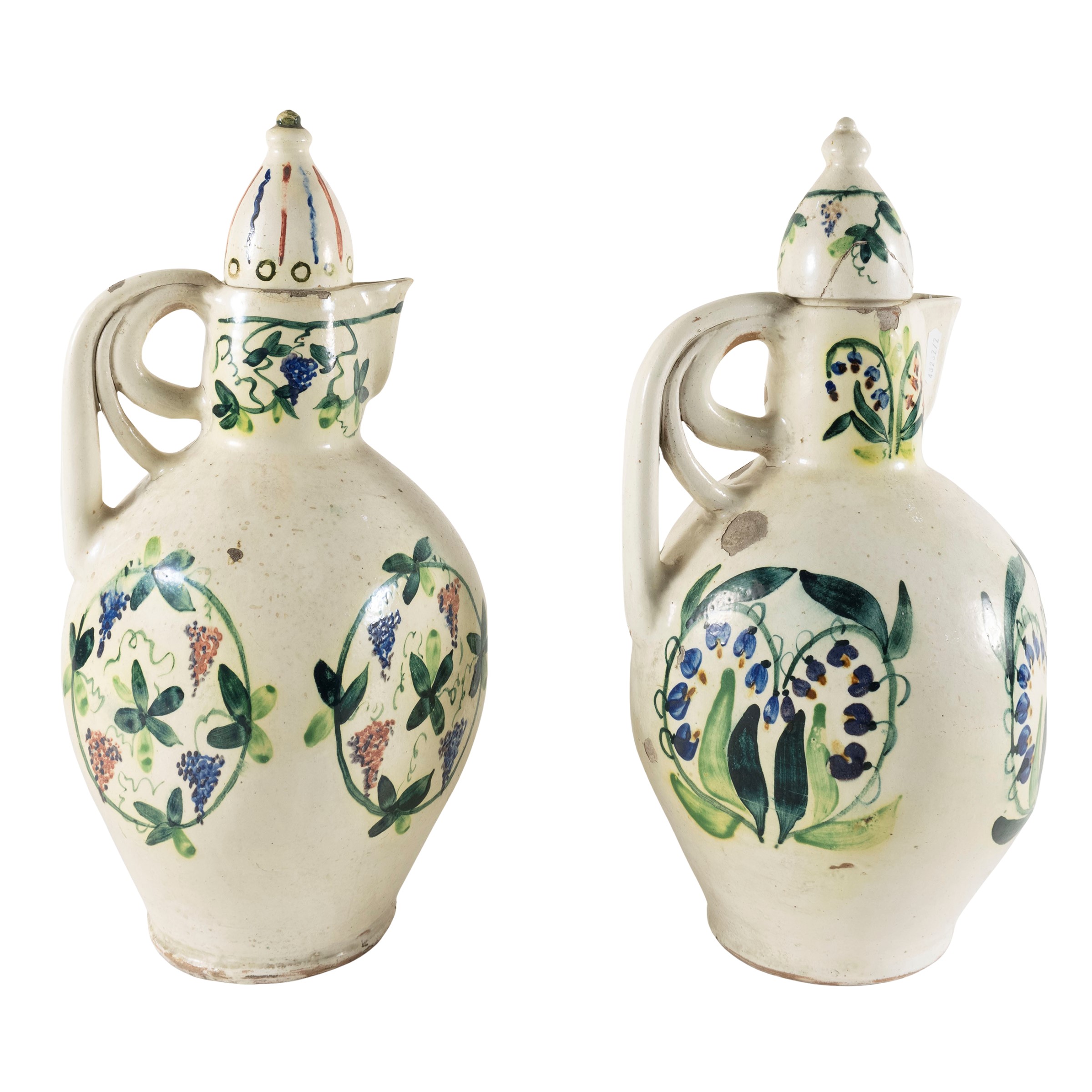 h. 37 cm.decorati in policromia con motivi floreali e grappoli d'uva, difetti, usure e mancanze