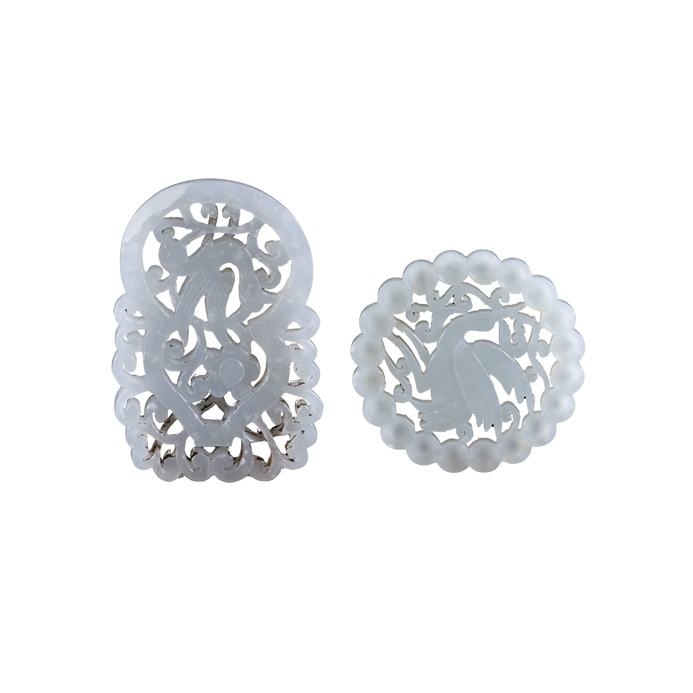 Due placche in giada bianca traforata