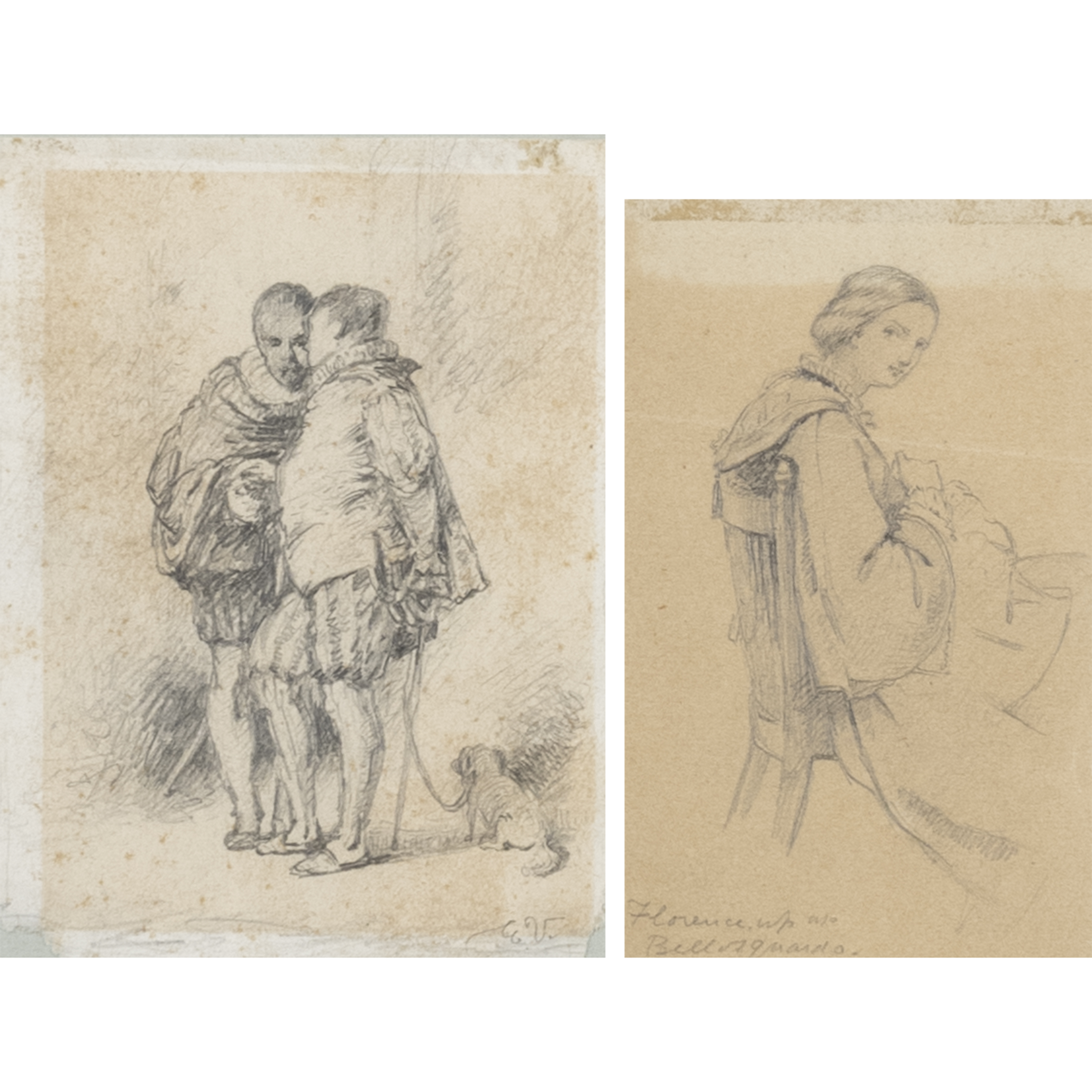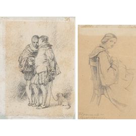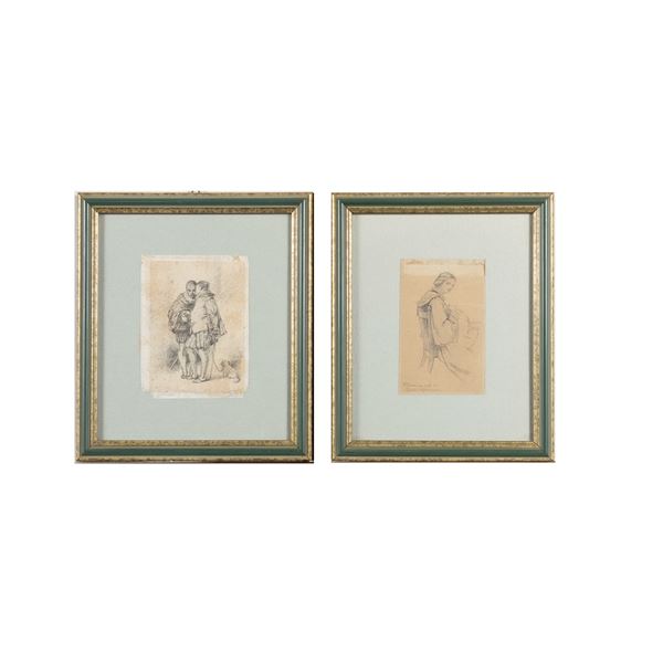 10x8 cm. - 9,5x6 cm."Figure", coppia di disegni a matita su carta, uno siglato in basso a destra, entro cornici