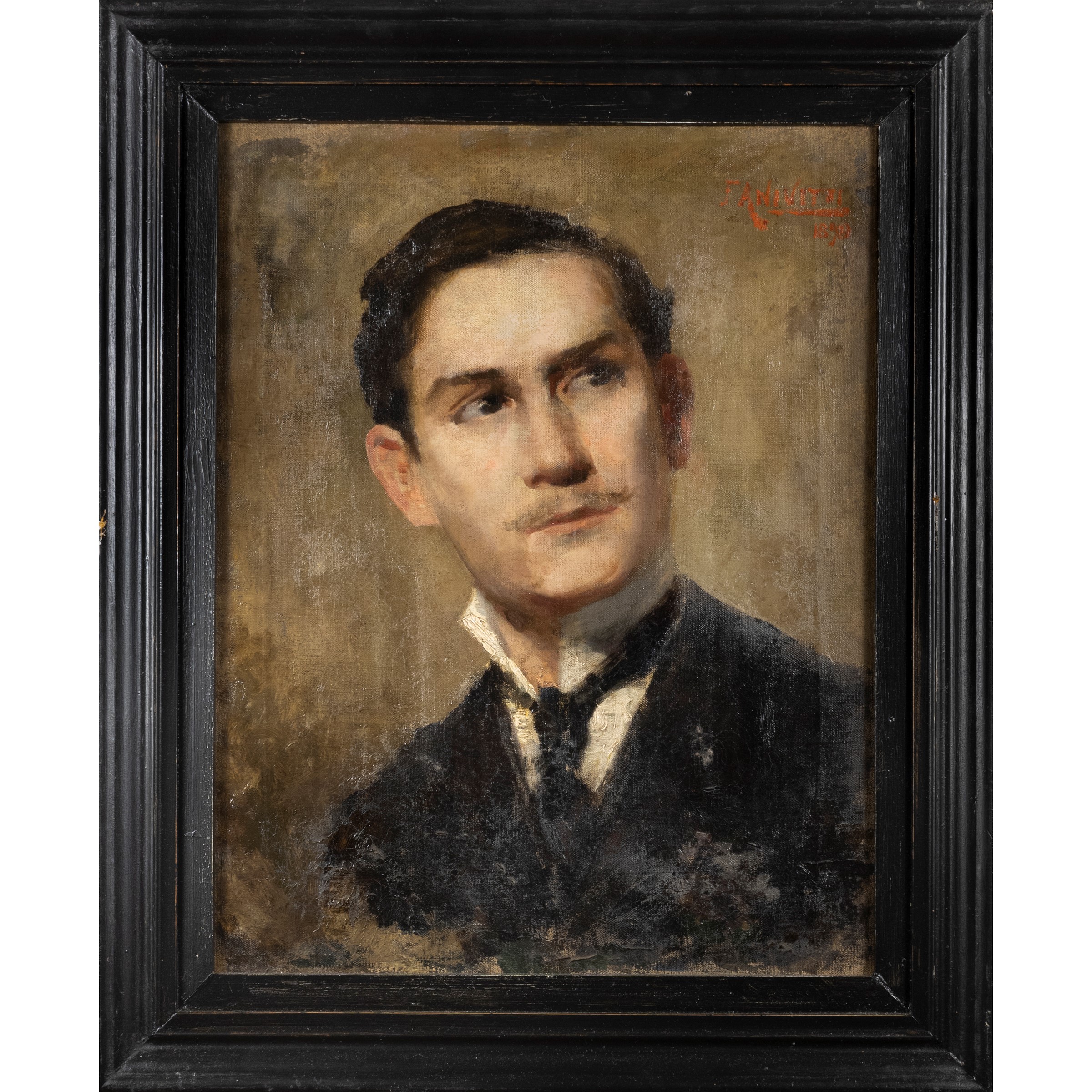 45,5x36,5 cm."Autoritratto", 1898, olio su tela, firmato e datato in alto a sinistra, entro cornice